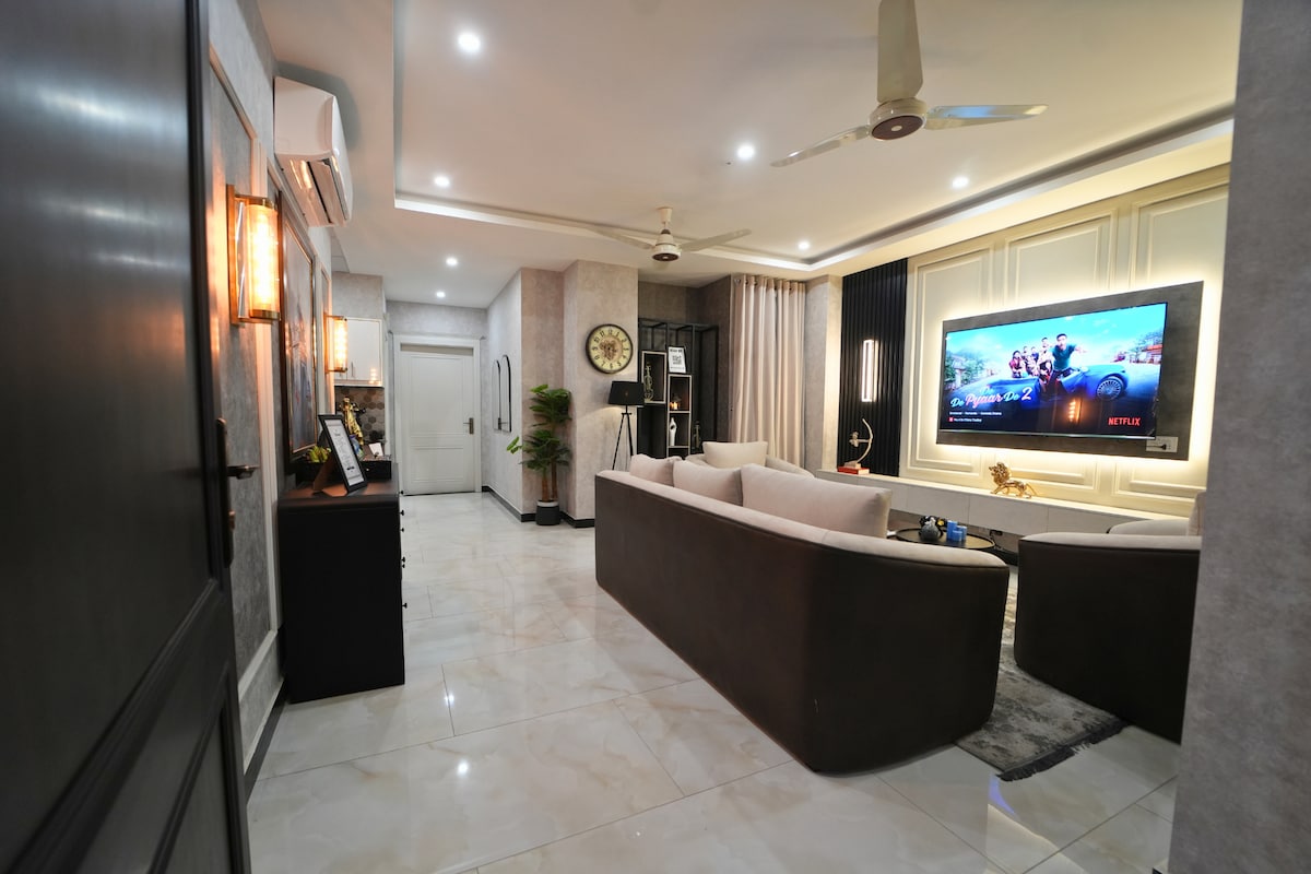 Zərifliyin sakitliklə birləşdiyi şəxsi məkanınıza qədəm qoyun. Düşünülmüş dizaynlı bu mənzildə minimalist dekor, səmimi işıqlandırma və cəlbedici yaşıl interyerlər var. Rahat divanlarda dincəlin, düz ekranlı televizorda sevimli şoularınızdan zövq alın və ya uzun bir gündən sonra yumşaq, rahat yataq otağında dincəlin. İslamabadın mərkəzində tək səyahət edənlər, cütlüklər, ailələr və ya sakitlik və üslub axtaran peşəkarlar üçün mükəmməldir. Yekun olaraq, bu unikal məkanın özünəməxsus üslubu var.