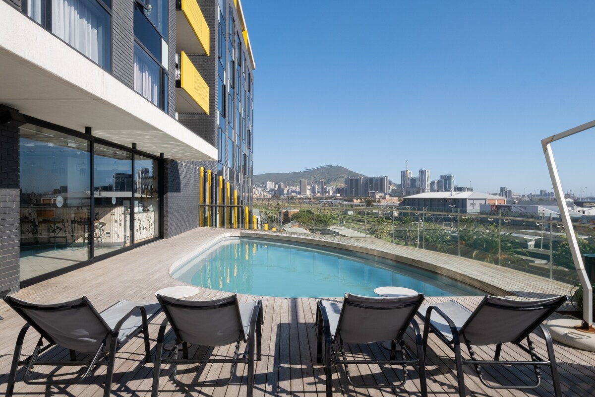 Welcome to our brand new designer home where where practical meets beauty and stylish taste is the order of the day. Throw your curtains open in the morning to enjoy the Table Mountain views from your ample balcony. The industrial feel and high ceilings give a gallery feel. If the moment grabs you head up to the roof top pool deck and entertainment area where you can enjoy crimson pink sunsets and 360 degree views of Cape Town including the Atlantic Ocean. *Zero power cuts in this building.