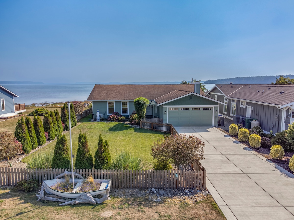 This incredible high-bank property combines striking panoramic views of the mountains, ocean & islands with a modern and newly remodeled interior. Experience some of the best sunsets of your life from the large outside deck that includes a grill (May-September) and an outdoor dining area (fire pit currently unavailable). Enjoy the large 4-person sauna, in home gym, open floor concept, cozy living room and TV area, white brick gas fireplace, and 3 dedicated workspaces with high-speed Wifi.