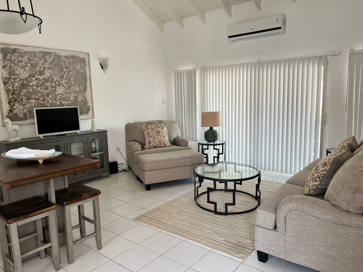 Our one bedroom condo, situated in a gated community with easy access to shops and restaurants, is the perfect place for a peaceful stay on the island. The apartment has one spacious bedroom with 2 queen beds and an ensuite. The open-plan kitchen/living area makes for a great social space for a small group of friends/family in addition to the access to the private community pool and tennis court. The condo is a stone's throw from local restaurants, taxi services, Marriott Resort and beach!