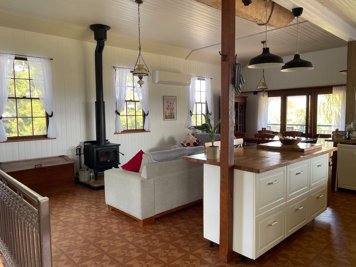 Ətrafdakı ferma, çay və dağ silsiləsinin 360 dərəcə mənzərəsi olan, təpənin üstündə yerləşən operativ fermada yerləşin. Ferma Uzaq Şimal Sahili hinterlendində yerləşir. Brisbendən 2 saatlıq, Qızıl Sahildən 1,5 saatlıq və Bayron Körfəzindən 1 saatlıq məsafədədir. Kabinə özü tam ucqar bir istirahət yeridir. Şimali NSW-nin gizli incilərindən biri olan kiçik Kyogle şəhərini araşdırın və Sərhəd Sıraları Milli Parkının gözəlliyinə daxil olun.