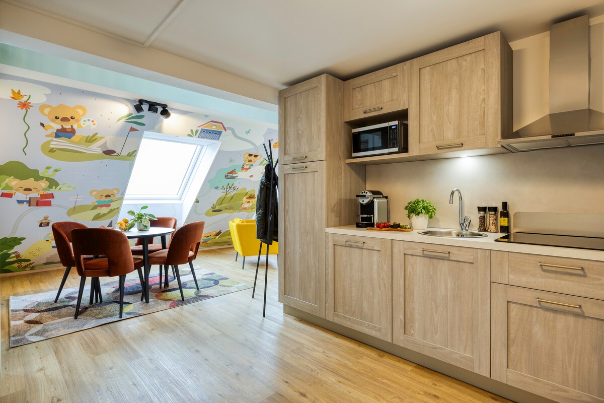 Somerset Schönbrunn-da unikal Ailə Loftumuzun füsunkarlığını yaşayın! Damda yerləşən bu ikimərtəbəli ailə otağı 12 yaşdan kiçik uşaqları olan ailələr üçün idealdır. Burada tam təchiz olunmuş mətbəx, yüksək sürətli Wi-Fi və Chromecast TV var. Ödənişli idman zalı, səhər yeməyi seçimləri və rahat ərazidə parkinqə girişdən zövq alın. Camaşırxana ləvazimatları da ödənişlidir. Rahatlıq və komfort üçün nəzərdə tutulmuş geniş, dəbli mühitdə dincəlin. Unudulmaz qonaqlama üçün indi bron edin! 🌟