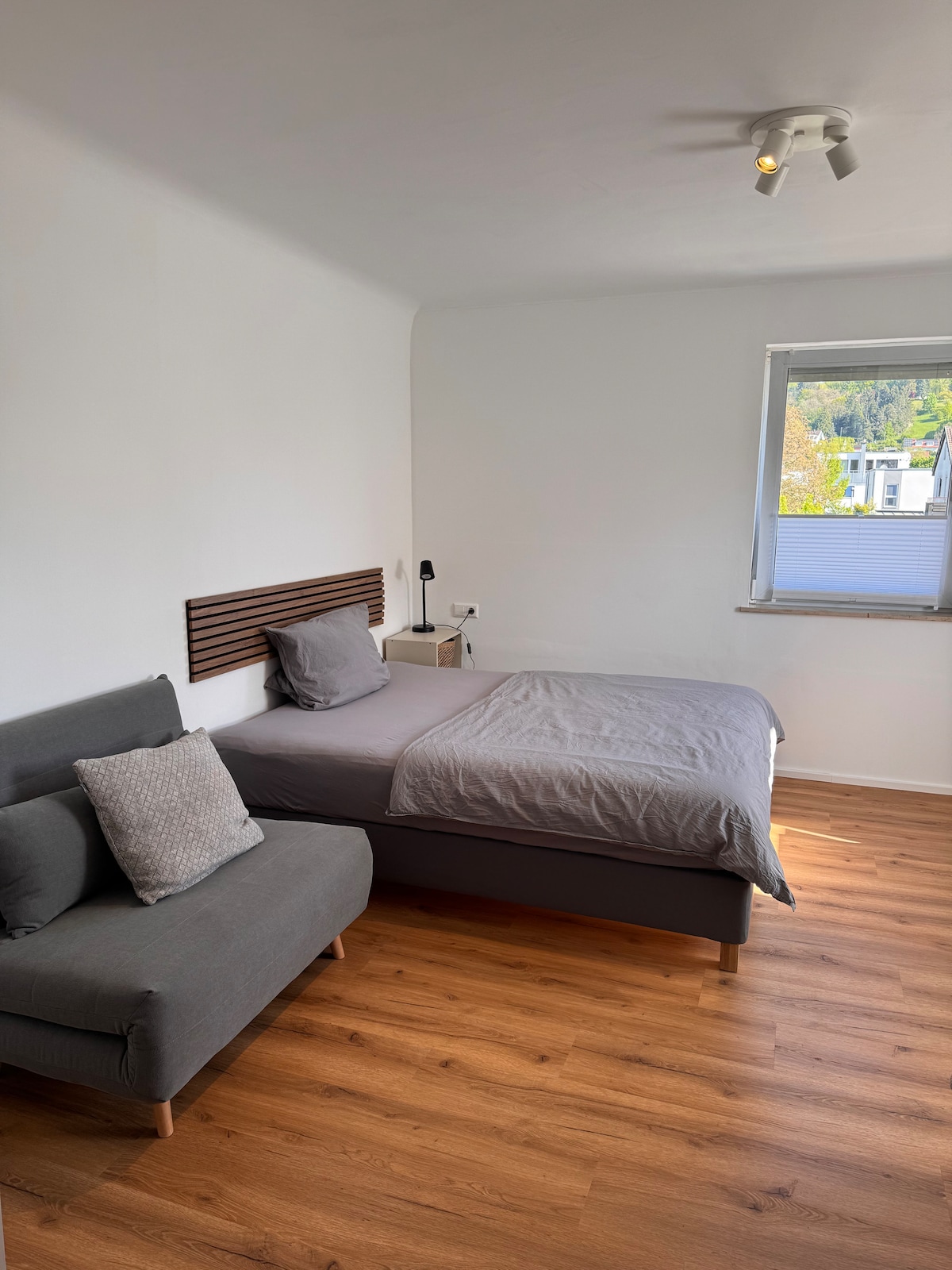 Fantastik üzüm bağı mənzərələri və Remstal-a açılan mənzərələri olan müasir dizaynlı taxta ev. Mənzil ayrıca evin birinci mərtəbəsində yerləşir və çöldən ayrıca mənzil girişi var. Ştutqart Mitteyə avtomobillə 15 dəqiqə, S-Bahn tərəfindən isə 20 dəqiqə. Qonaqlama yeri Mənzildə keyfiyyətli fitinqlər var. Plan mətbəxini, yemək sahəsini açın Çox böyük açıq hava terrası sizi uzanmağa dəvət edir. Bütün mənzil imkanları mövcuddur