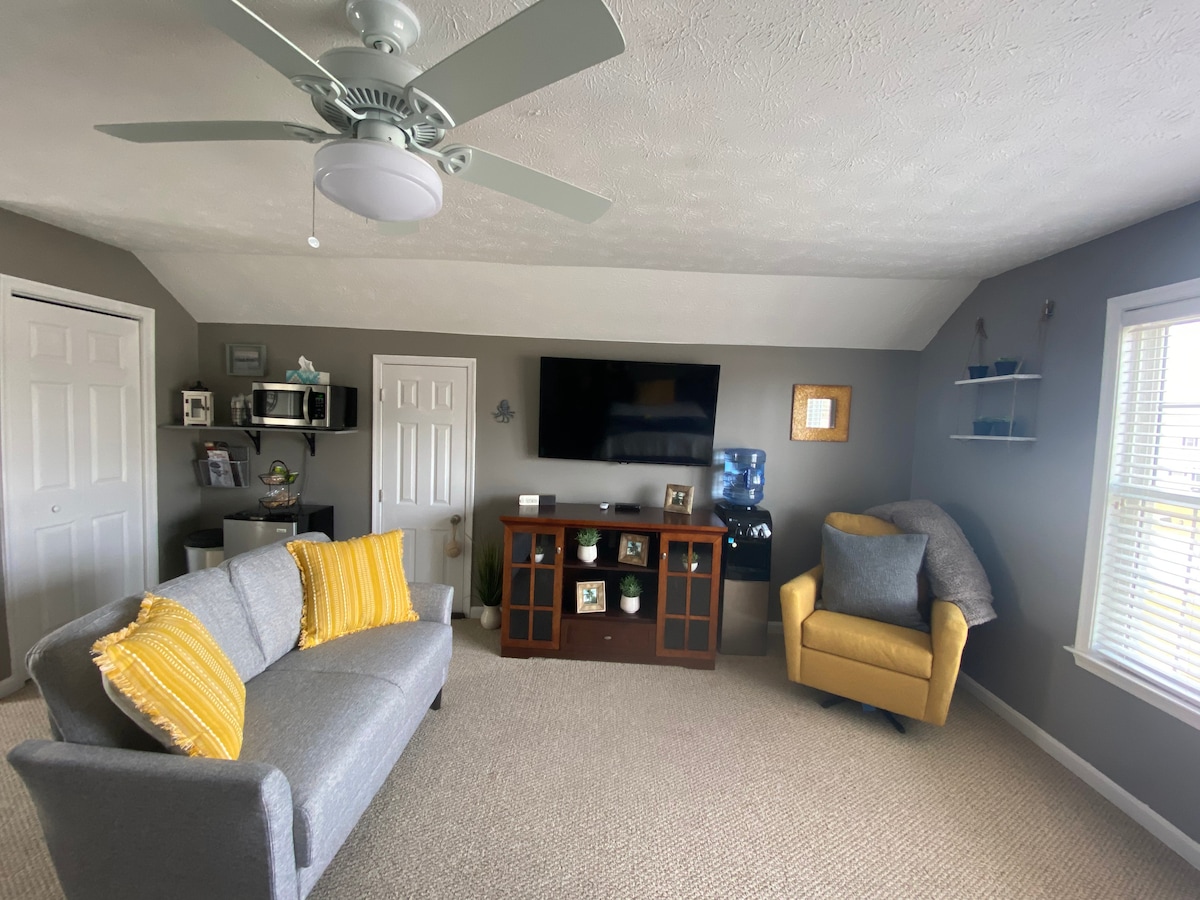 Sahilyanı ərazini heç vaxt belə görməmisiniz. Ocean City şəhərinin 7-ci küçəsində tamamilə körfəzdən asılan lüks bayfront loft mənzili olan Edgewater Escape-ə xoş gəlmisiniz. Körfəzin ön eyvanında əyləşin və içəridə əyləşin və qayıqlara, delfinlərə, quşlara və hətta bəzən eyvanın ayaqlarına qədər üzməyi seyr edin. Loftda geniş çarpayı ölçüsündə çarpayı var və alt divan rahat 150-179 sm-lik çarpayıya çıxır. Yenicə təmir edilmiş böyük səfəriniz və ya sakit istirahətiniz üçün tam təchiz olunub:)