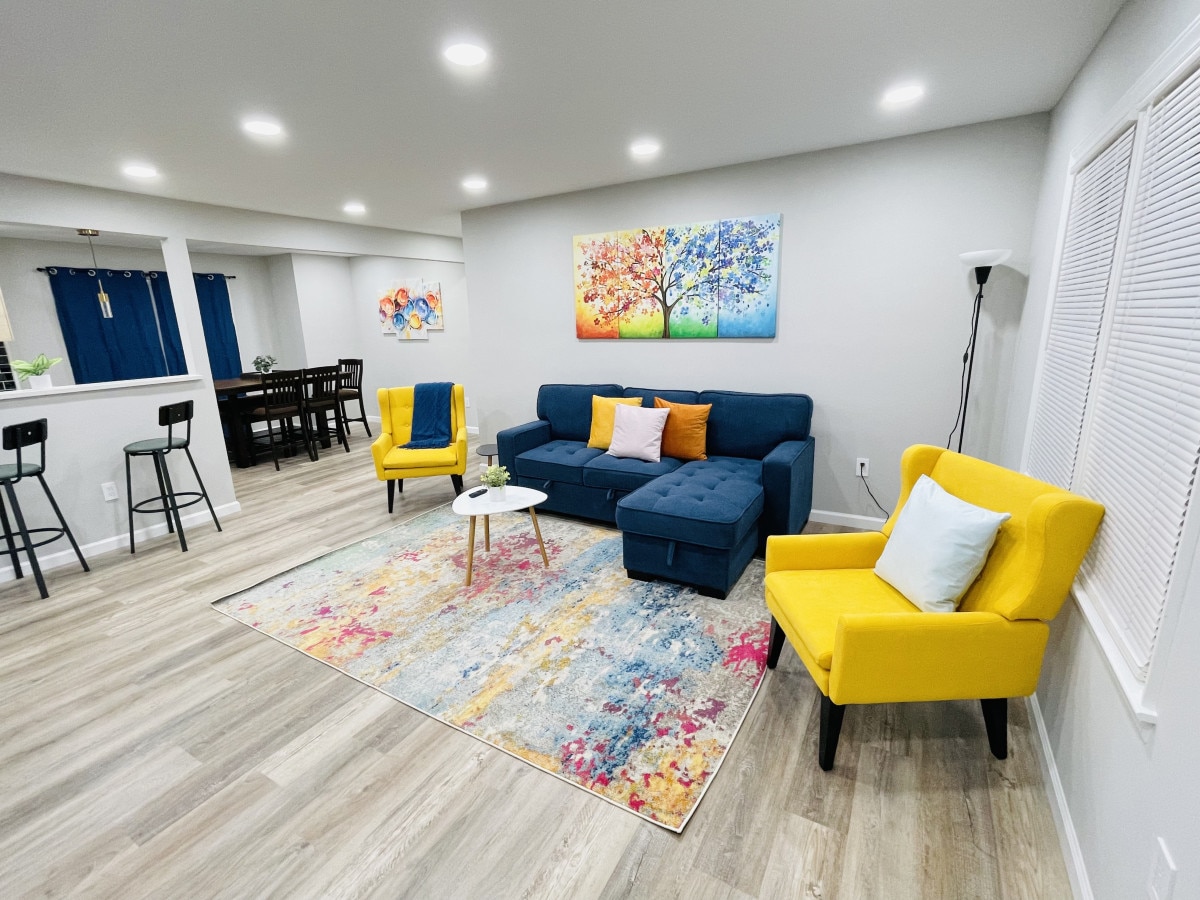 Starmount Forest is a quiet upscale neighborhood in the heart of Greensboro. Located just half a mile from upscale dinning and shopping In Friendly Center. This Spacious 2300 sq ft home features an inviting open floor plan with a large kitchen, den, living room and sunroom. The Kitchen is fully equipped with stainless appliance and everything you need to cook your favorite meal. New Furnishings throughout, master bath boasts large walk in shower, and every bedroom is equipped with a smart TV.