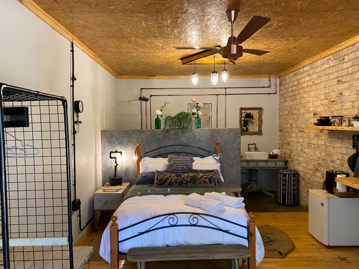 Retro və üzüm toxunuşları ilə Chic və səmimi. ELEKTRİK ENERJİSİNİN KƏSİLMƏSİ yoxdur, günəş enerjisi sistemi quraşdırılıb. GERİ UP SU SİSTEMİ quraşdırılıb. Menlyn və Time Square, Pretoria East Hospital və Kloof Xəstəxanasına 3km məsafədə sakit təhlükəsiz kənddə sakit bir gizlənpaç. Netflix və Youtube-da ağıllı tv axını ilə SÜRƏTLİ tətbiq olunmamış WIFI. Səhər tezdən qəhvə və səhər yeməyi, yaxud da açıq havada şam yeməyi üçün ayrıca kölgəli veranda. Paylaşılan imkan yoxdur. Mənzil qonaqların qorunması üçün nəzərdə tutulub.