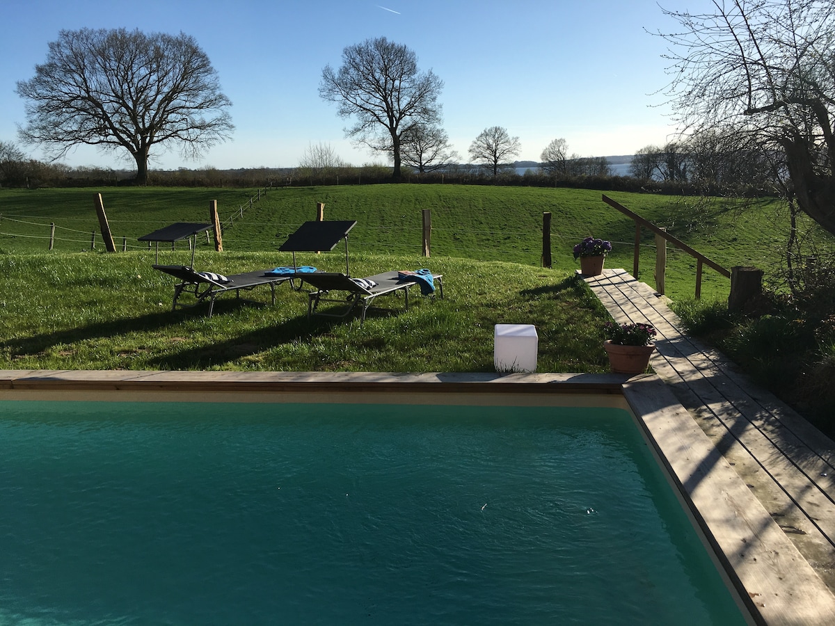 Kottecimiz Baltik dənizi fyord Şleidə yerləşir və ailələr, su idmanı həvəskarları və sürətli internetlə rahat işləmək üçün idealdır! Ev tətil evi qəsəbəsinin kənarında, kəndin ortasında yerləşir və Şleinin fantastik mənzərələri var. Bir neçə dəqiqədən sonra suyun üzərində olacaqsınız. Ev, böyük terraslar və bağ istənilən hava şəraitində oynamaq və istirahət etmək üçün yer təklif edir.