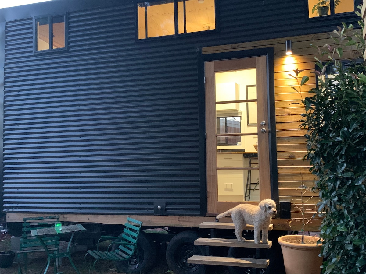 Fully furnished Tiny House. Modern compact living space with a full size fridge/freezer, Queen bed, convention/grilling microwave, electric hot plate and smart TV. Full size shower in spacious bathroom. Air conditioning and heating in open plan living space with dining space/work space. Large loft storage area, plenty of closet space and kitchen storage including large pantry. Off street parking in cul-de-sac street that is a short walk to CBD and local amenities.