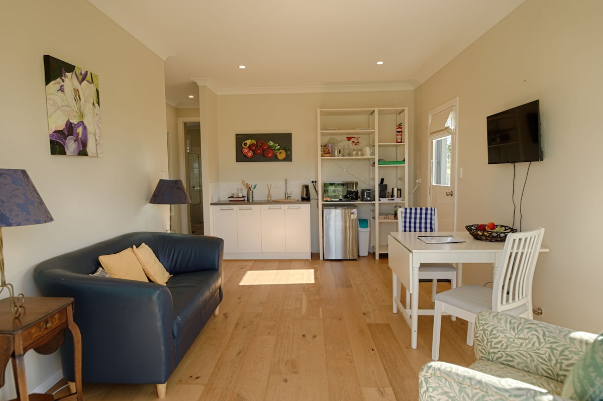 Recently refurbished (2021) cottage set in our lovely tiered private garden on the slope of Mt Alexander. Views to the Mittagong Ranges and a very quiet and peaceful location. Easy 15 min walk to train station nd many food and drink venues. A/C (heat/cool), wood burner, ceiling fan, double glazed windows. Queen bed, bathroom with heated floor, heated towel rail and a well equipped kitchenette with basic breakfast provisions including tea and coffee. Private, peaceful & perfect for couples.