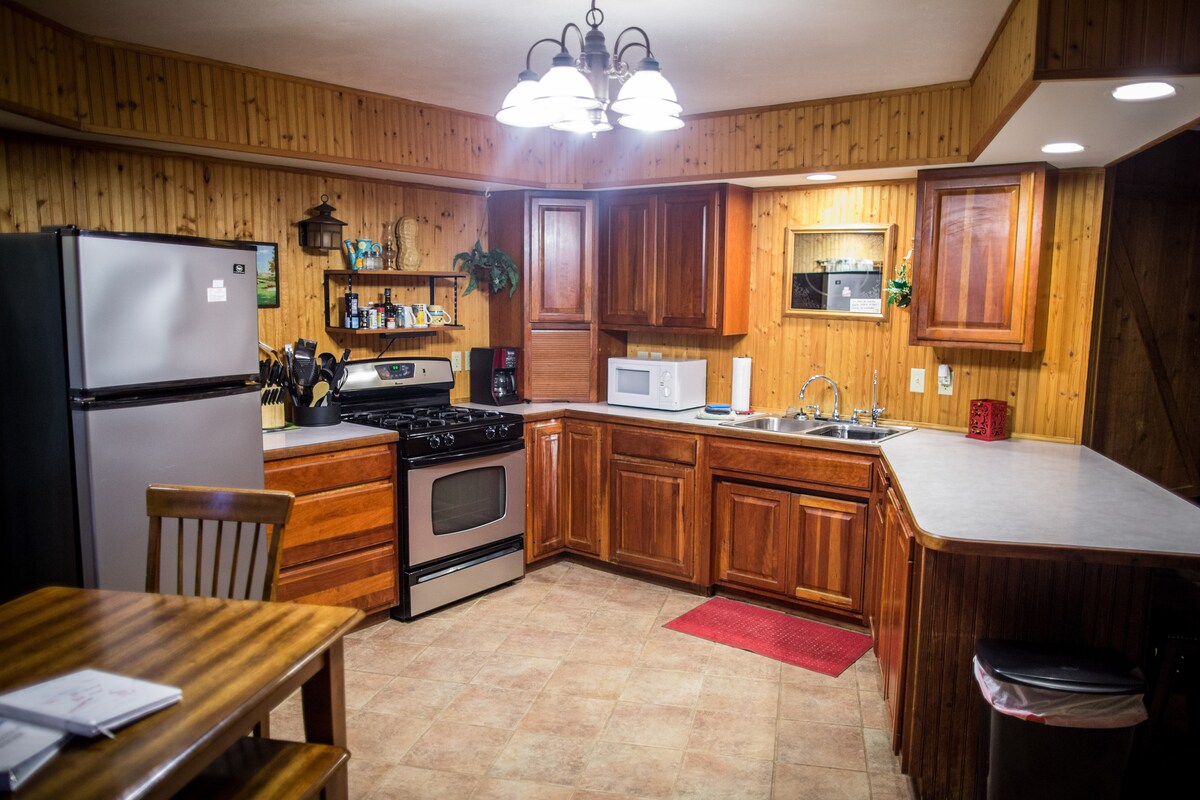 Come stay at our rustic getaway in scenic Northeast Iowa. The lodge is furnished with 4 queen beds, 2 twin beds, 1 full-size pullout couch and two large couches - now with fast Starlink satellite internet and a level-2 electric vehicle charger! It is fully furnished and is a perfect location to have family vacations, reunions or even private retreats. Located outside of Twin Springs park, in Decorah, Iowa.