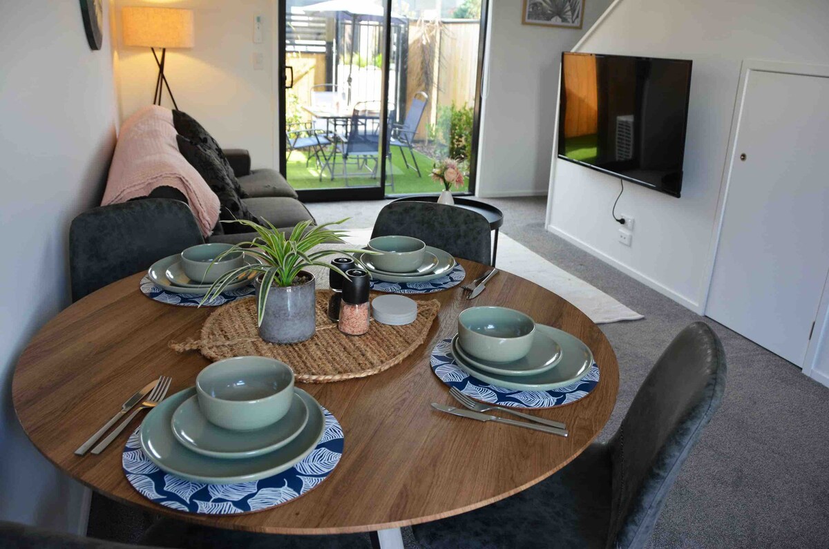 Come and stay at our new, centrally located 2 bed townhouse in Christchurch. The house located on Lincoln Road and has onsite parking complete with EV charger. It is within walking distance to Hagley park, hospital, Christchurch Arena, Tranzalpine and The Orangetheory stadium! The airport is only 15 minutes by car. Bus, scoot or cycle to the city in 10 minutes! We offer a convenient self check in service complete with your own access code so you won’t have to worry about key collection.