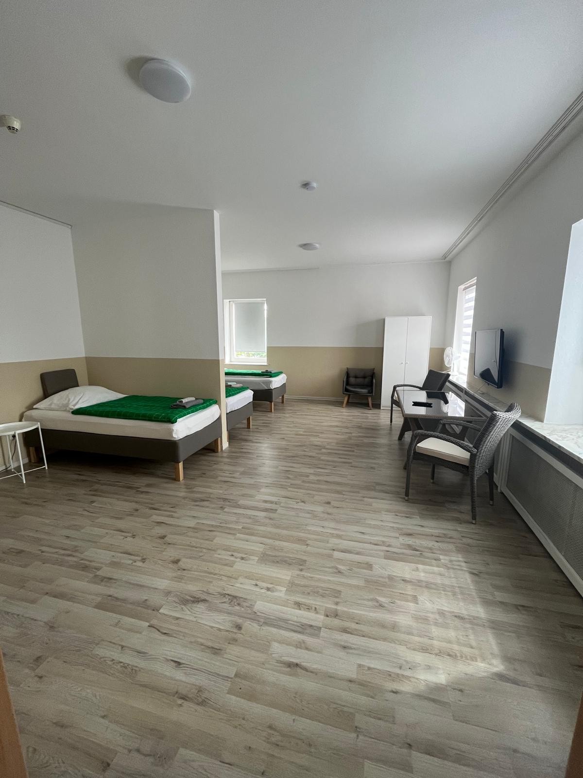 İşdən sonra öz rahat otaqlarınızda dincəlmək? Böyük qrup olsa da, bizimlə bu mümkündür! Öz geniş otağınız olacaq: Televizor, eləcə də şəxsi hamam otağınız. Mətbəx, masa və divan olan ümumi otaq sizi dincəlməyə dəvət edir. Əmlak ətraf magistrallara yaxın, lakin sakit ərazidə yerləşir.