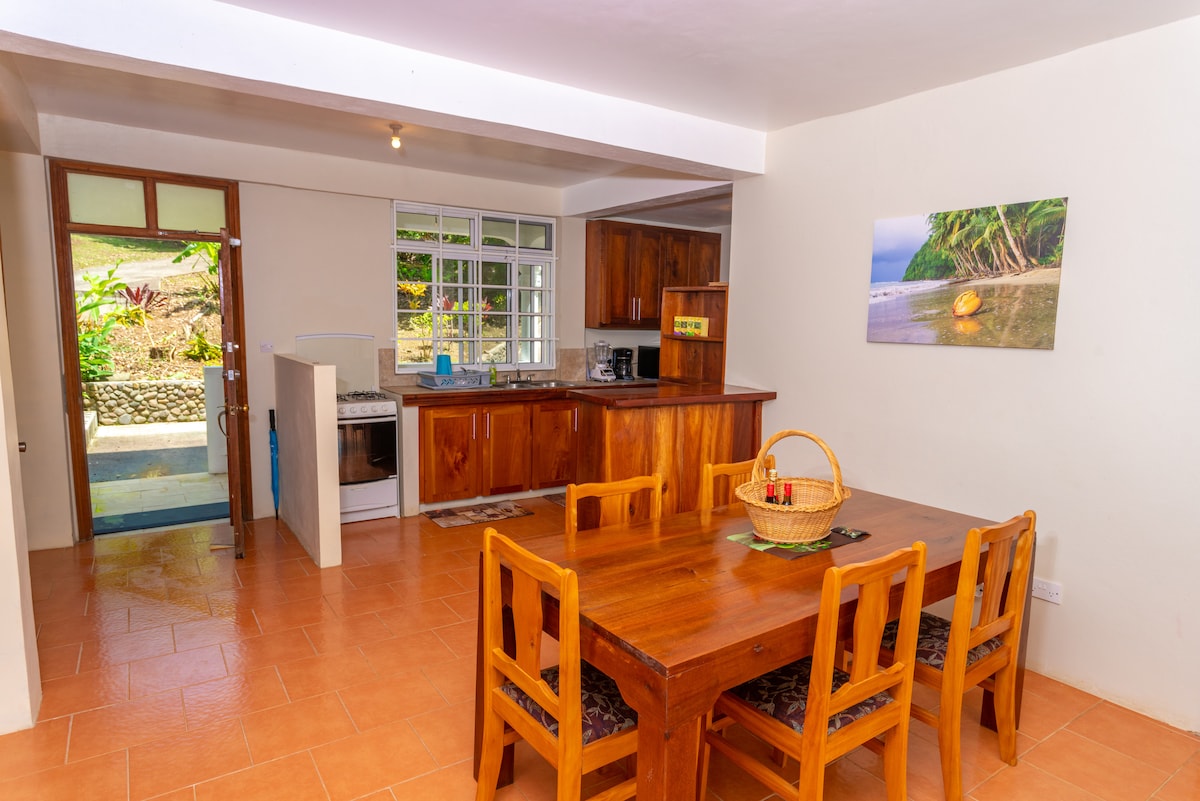 "FouFou Cottage" kimi "10 Ən Sərfəli Karib Yerləri" və Təbiətdə TƏHLÜKƏSİZDİR. Geniş verandası, quş ovlamaq və istirahət etmək üçün mükəmməl olan geniş verandası olan, xüsusi, özünə məxsus ağac ev tipli kottec. Nəfəskəsici dəniz mənzərələri və sərin dağ burulğanları olan təbii qoruq. Müasir Ensuite Hamam və Mətbəxt ilə unikal, 2 səviyyəli Açıq Hava, Eko-kottec. Sakit və Rahat şəkildə Portsmutun saytlarına, restoranlarına, mağazalarına və çimərliklərinə bir mildən az məsafədə yerləşir.