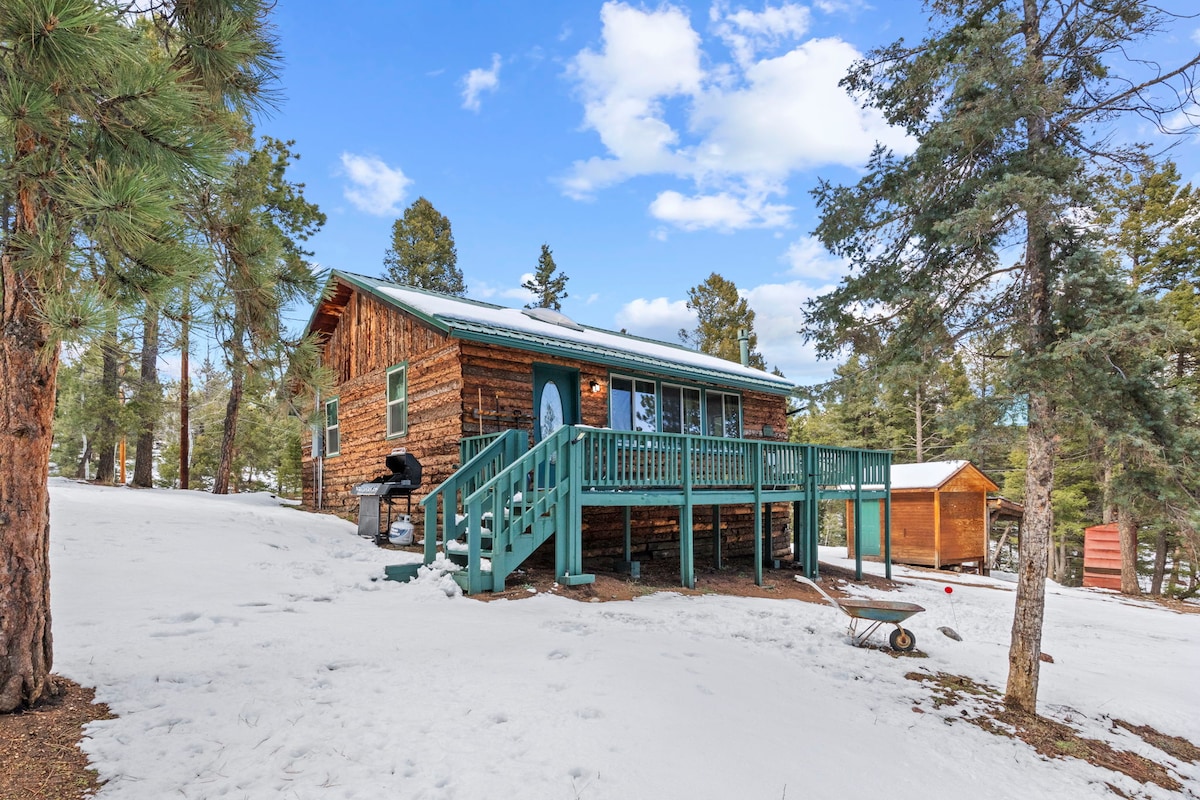 The Black Ridge Cabin - Your cozy mountain escape! 🗻Tucked in Colorado’s STUNNING Pikes Peak region 🛏️ Cozy 2BR w/queen beds on 1 private acre 🌌 Secluded hot tub under the stars 🔥 Indoor Fireplace + fast Starlink Wi-Fi 🍳 Stocked kitchen + washer/dryer 🌲Near hiking trails & hillside access with fenced yard 🚗 20 mins to Woodland Park, 2 hrs to DIA 🚶♂️ Walk to scenic Burgess Reservoir (no lake access) 🔥 Fire pit, outdoor dining, forest views 🅿️ Covered carport + driveway parking