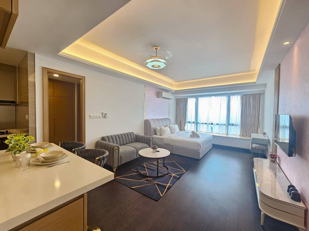 (1+1 BR və 1 hamam otağı) JB şəhər mərkəzinin mərkəzində müasir və rahat kondominium. 4pax ailəsi, dostları və biznes qrupu üçün uyğundur. **CIQ, City Square, KSL, Pelangi və Larkinə 5 saniyə **Mid Valley Southkey, Larkin Sentral və Sentosa 8mins **Paradiqm AVM, Sutera, Skudai və Ostin dağına 15 dəqiqəlik məsafədə ✔ 4K SmartTV ✔ Yüksək Sürətli Wi-Fi, uzatma ştepseli olan iş masaları ✔ Paltaryuyan maşın ✔ Hər otaqda kondisionerlər. ✔ Atari konsolu, Mahjonq və Masaüstü oyunlar. 1 avtomobil üçün ✔ PULSUZ PARKİNQ