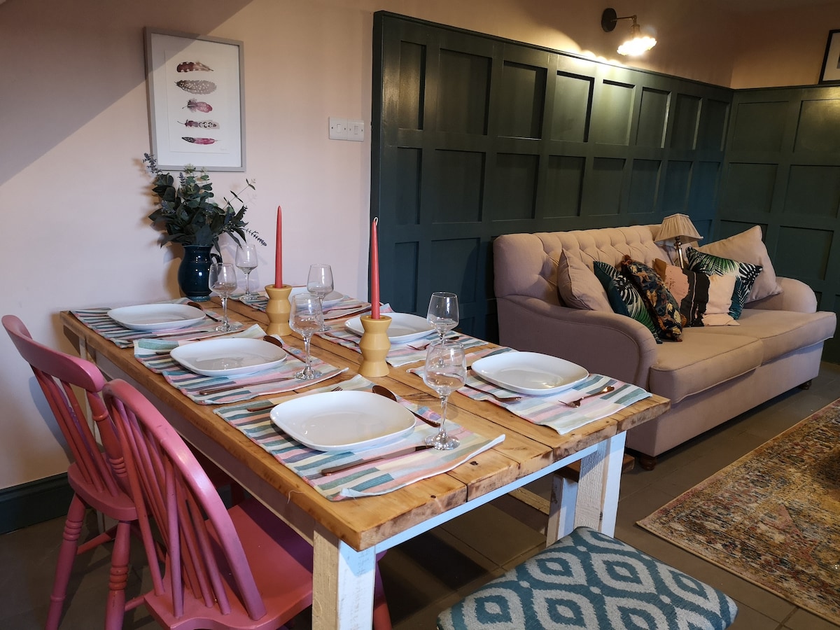 *HOT TUB INCLUDED IN RATE The Stables is a beautiful 17th century cottage apartment which is located in the picturesque village of Georgeham, Croyde. Some of the best beaches in the UK only 5 mins drive. The accommodation got it's name from originally being the stables of the village where the horses were stored, of course you won't find any horses but a beautiful living area Outside there is a cobbled courtyard area with Swedish style covered hot tub area with hot shower and outdoor seating.