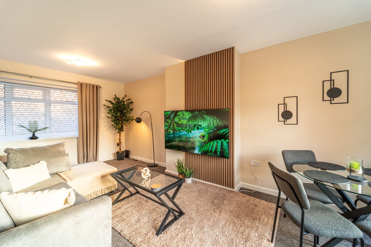 İdeal mövqedə yerləşən gözəl, təmiz və geniş yeni tikilmiş mənzil. Cadbury World və digər yerli yerləri ziyarət edən cütlüklər, şəhər mərkəzinə işə gedib-gələn gənc mütəxəssislər və ya Birmingem Universitetində təhsil alan tələbələrin qohumları üçün mükəmməldir. Xüsusiyyətlər: - Geniş mətbəx/qonaq sahəsi - Zərif estetika - İki nəfərlik yataq otağı - Xüsusi və yaxşı işıqlandırılmış avtomobil parkında birbaşa düz altda xüsusi avtomobil dayanacağı yeri - Dəmir yolu stansiyasına 10 dəqiqəlik piyada məsafədə - Bham Uni-dən 5 dəqiqəlik məsafədə - Kadberi Dünyasına 4 dəq. məsafədə