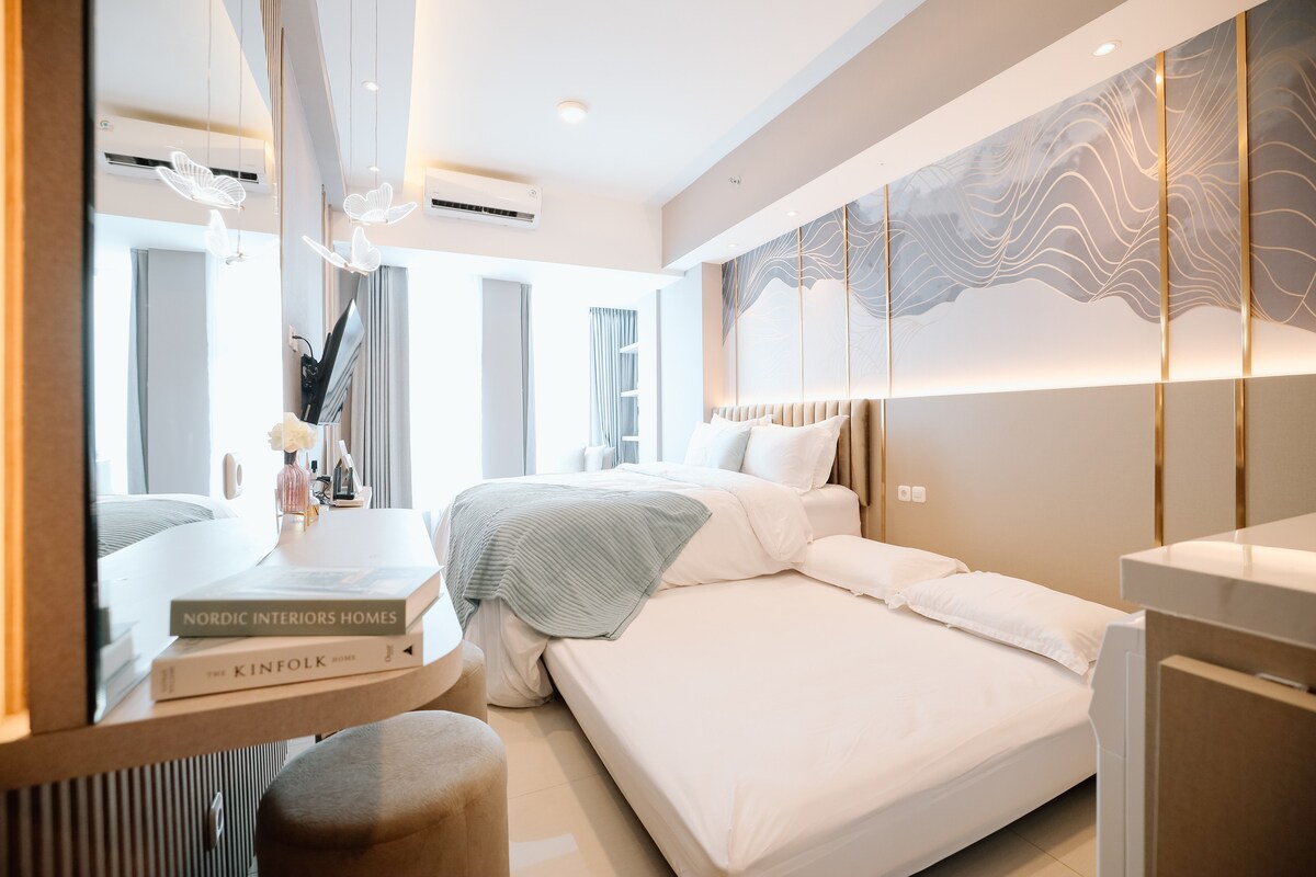 Surabaya, Yale, Educity Tower-da yeni təmir edilmiş studiya! Pakuvon Şəhər AVM-dən və şəhərin ən yaxşı yemək yerlərindən cəmi bir neçə dəqiqəlik məsafədə təravətli, dəbli bir məkan təcrübəsi yaşayın. Rahatlıq və rahatlıq sevən gənc səyahətçilər və ya tələbələr üçün mükəmməldir. Rahat çarpayı, sürətli Wi-Fi, Netflix-Smart TV, hovuz və şəhərin mənzərələrindən zövq alın. müasir şəhər tətiliniz burada başlayır! İndi bron edin və Surabaya qonaqlamanızı unudulmaz edin!