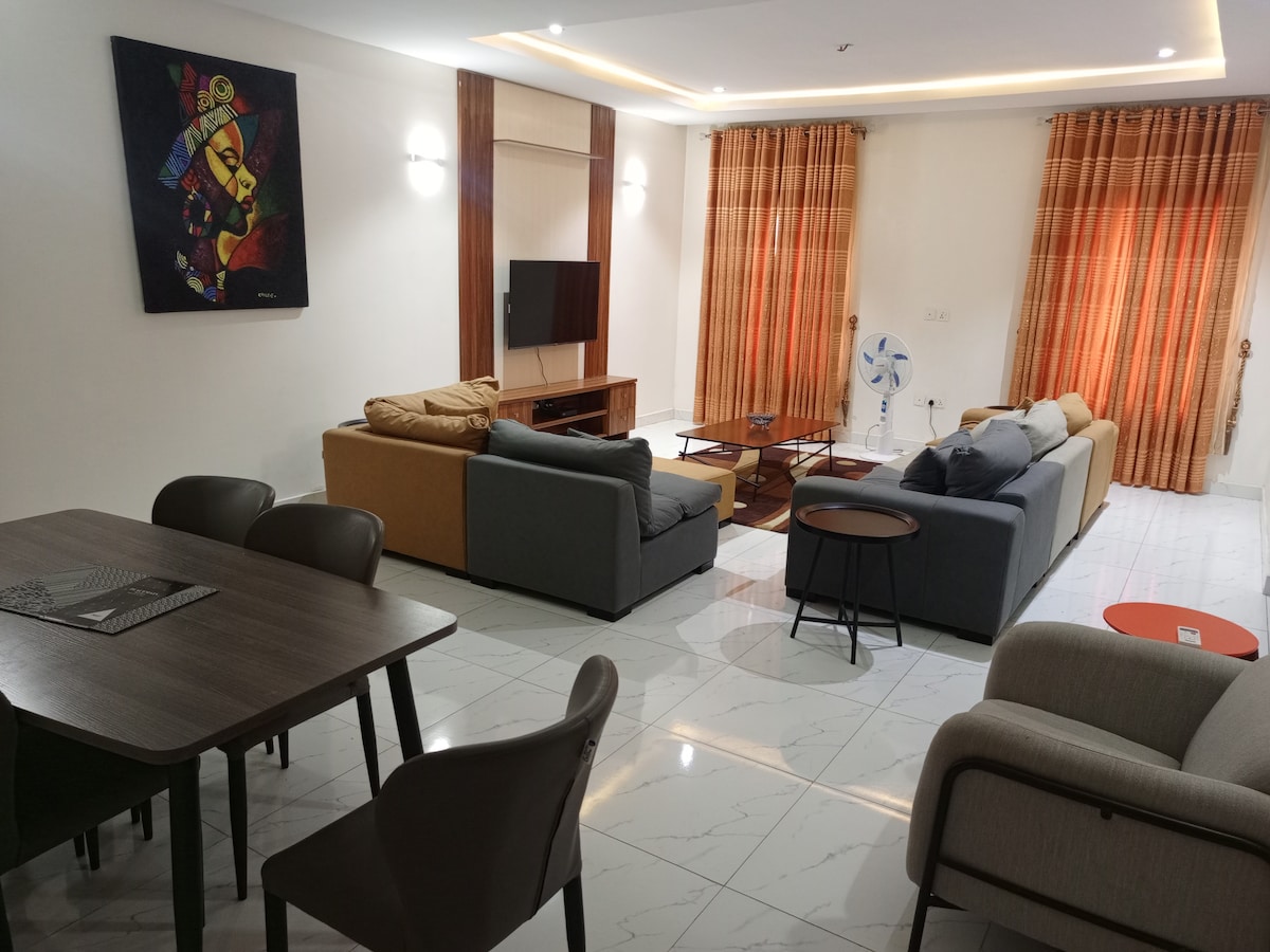 Experience total luxury, privacy and exceptional comfort in this Cozy 3bedroom apartment in Abuja. Nestled in a serene residential area. Designed for families, groups who value their own space. This home features three spacious bedrooms with our plushed double sized beds, each with its own private ensuite bathroom.... Enjoy 24/7 power with high speed Wi-FI and the luxury of having the entire property to yourself. With easy access to the heart of Abuja