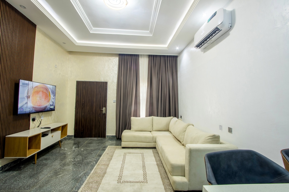 One bedroom apartment in Wuye, Abuja with the perfect ambience designed for guests who value comfort, security, and seamless service. Ideally located directly opposite the ultra-modern Wuye Market giving you easy access to fresh food, essentials, and nearby restaurants while still enjoying a discreet, peaceful setting. • Great location • Secure area • 10mins drive to wuse 2 • 24/7 electricity (Inverter & Generator) • Fully equipped kitchen (Stove, pot, pans, wine opener) • Fast WiFi