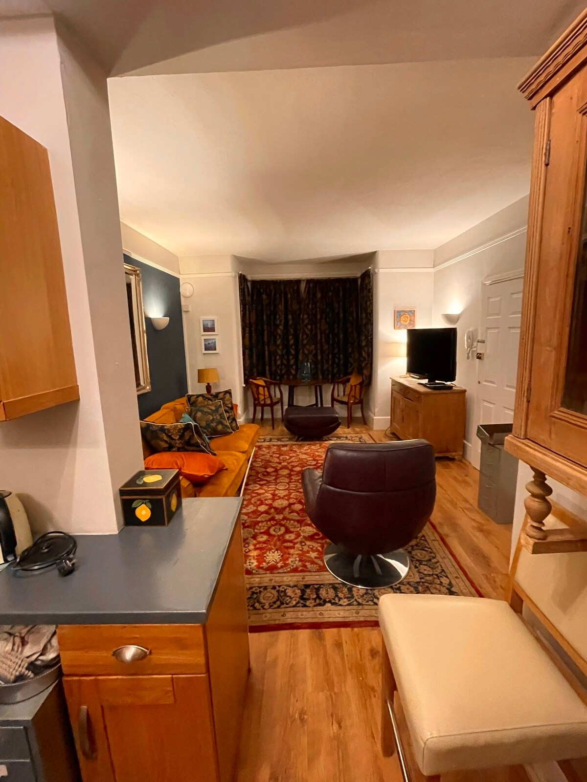 Ashdown Forest-də velosiped səfərləri və gəzintilər üçün mükəmməl bir baza olan bu ayrı, özünə məxsus birinci mərtəbə studiyası yaşayış sahəsindən sahələrə və canlı təbiətə heyrətamiz, fasiləsiz mənzərəyə malikdir. Hartfild kəndinin mərkəzində yerləşən bu yaşayış yeri sanki AA Milne və Winnie Pooh pərəstişkarları üçün lazım olan məşhur Pooh Corner-dən bir neçə dəqiqəlik məsafədə yerləşir.