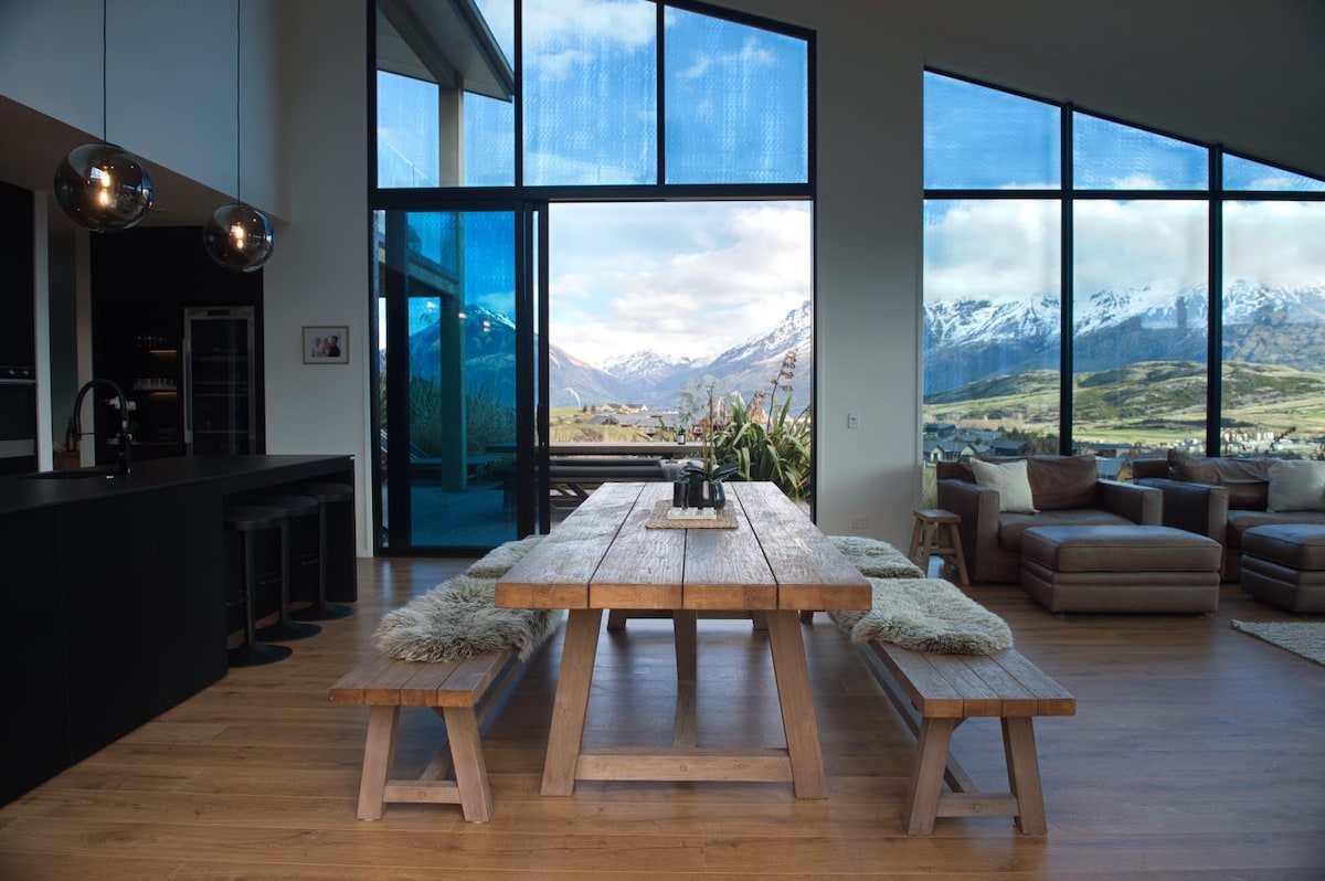Yeni tikilmiş, döşəmədə istilik sistemi olan ən yüksək səviyyəli bu ev ətrafınızı bürüyəcək və özünüzü səmimi, rahat və Queenstown-un təklif etdiyi hər şeyə hazır hiss etməyinizə səbəb olacaq. Arxaya çəkilin və Spa, qonaq otağı, əsas yataq otağı və ya açıq hava mebelində balkondan Remarkables dağ silsiləsinin köklü mənzərələrindən zövq alın. Duzlu Spa 5 nəfərlikdir və hər zaman islanmağa hazırdır. Əmlak tərtəmizdir və 5 ulduzlu keyfiyyətli döşəkağılar və çənbər mənzərələri ilə seçilir.