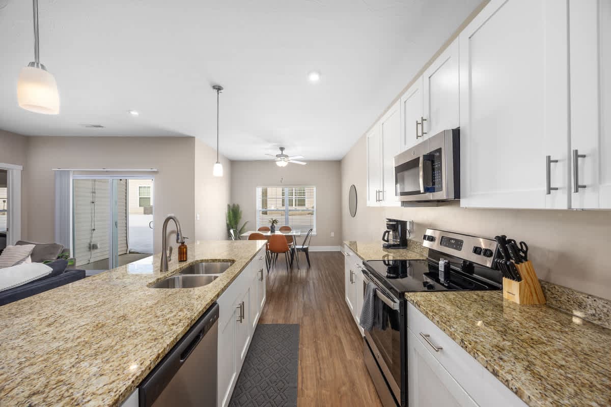 Miçiqan ştatının Qrand-Rapids şəhərindən cəmi 10 dəqiqəlik məsafədə yerləşən The Grand Castle mənzillərində komfort və rahatlıq yaşayın. Sürətli Wi-Fi, smart televizorlar, mənzildə paltaryuyan maşın və oyun otağı, fitnes mərkəzi, teatr otağı, uşaqlar üçün sehrli Gözəl və Bədheybət kitabxanası və yay aylarında açıq hovuz daxil olmaqla fantastik icma imkanlarına çıxışı olan tam təchiz olunmuş mənzillərdən zövq alın. **Nəzərə alın ki, açıq hovuz Anım Günündən Əmək Gününə qədər açıqdır.**