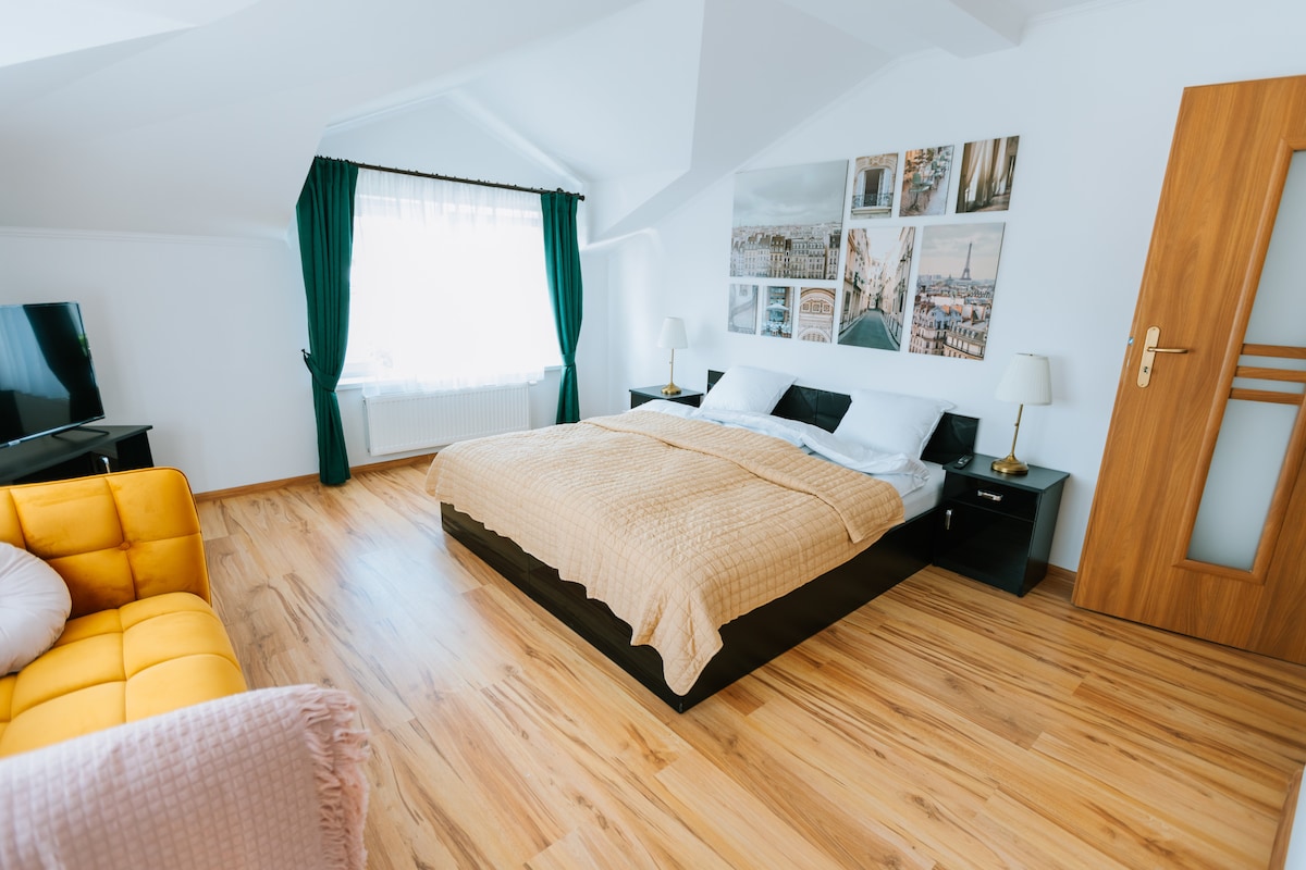Şəhərin mərkəzindən təxminən 500 metr məsafədə yerləşən mətbəx, yemək otağı, yataq otağı, hamam otağı və paltardəyişmə otağı olan yeni, tam təchiz olunmuş mənzil. Sakit, sakit məhəllə, öz parkinqi. Əmlaka nəzarət edilir. İmkanlara daxildir: çaydan, qəhvə maşını, qazan və tavalar, gümüş qablar, süfrə qabları, şüşə qablar, döşəkağılar və dəsmallar dəsti, tualet ləvazimatları, tualet kağızı. Pulsuz Wi-Fi və TV. 2 birnəfərlik çarpayı və ya 1 ikinəfərlik çarpayı qurmaq imkanı. Rahat əlavə çarpayı ilə təchiz olunub.