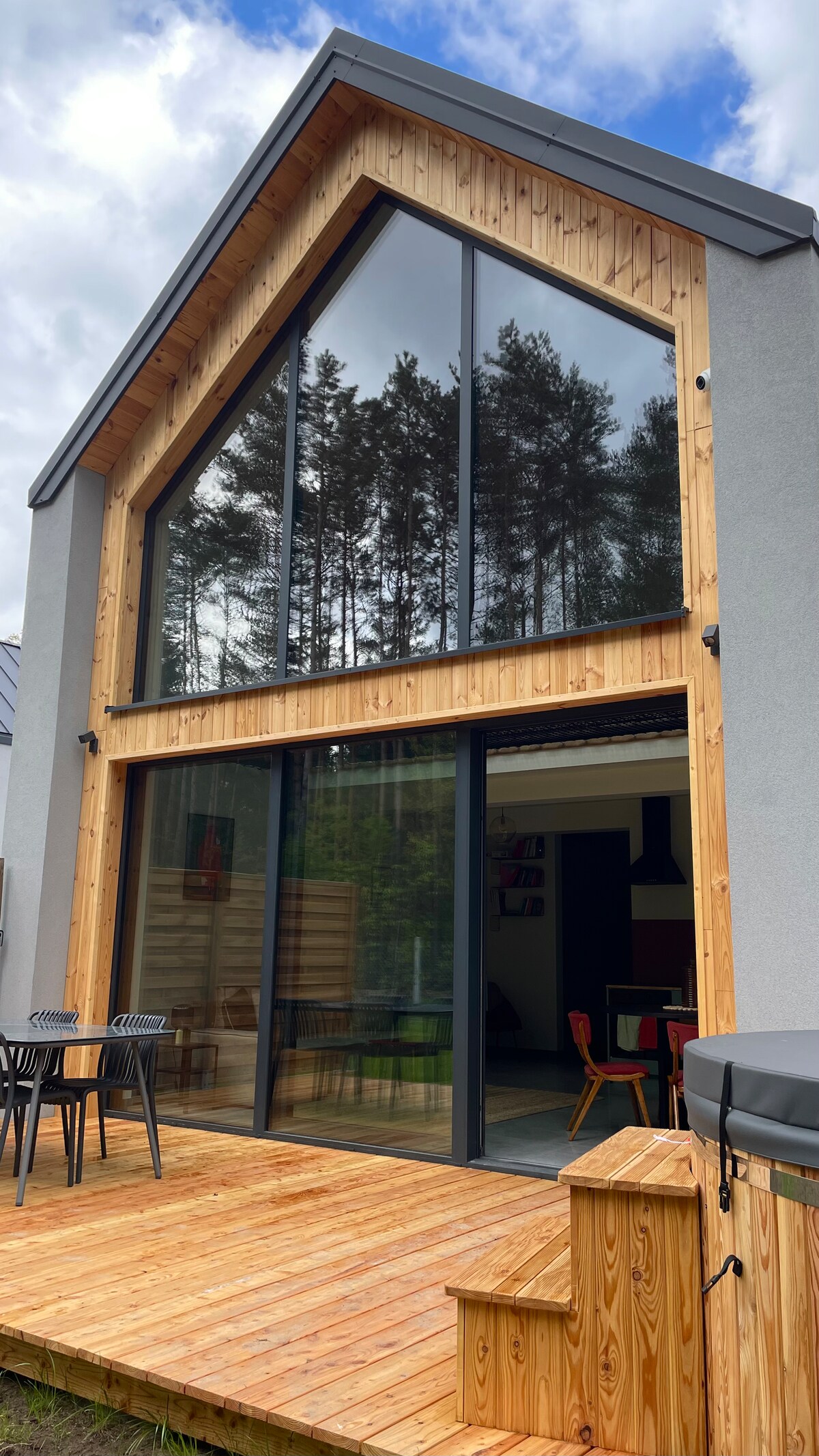 Natura 2000 ərazisində göl kənarında atmosferli taxta ev. Bəli, göldə çimmək olar! Göldə üzmək üçün SUP təklif edirik. Qurbağaların qulaq asması ilə yuxuya getmək və quşların mahnısı ilə oyanmaq istəyirsinizsə, evimiz sizin üçün mükəmməl olacaq. Böyük bağ idman və aktiv istirahət üçün yer təmin edir. Ev göbələk və giləmeyvə ilə zəngin meşələrlə əhatə olunub. Qonaqların ixtiyarında slayd və qum qutusu olan uşaqlar üçün oyun sahəsi də var.