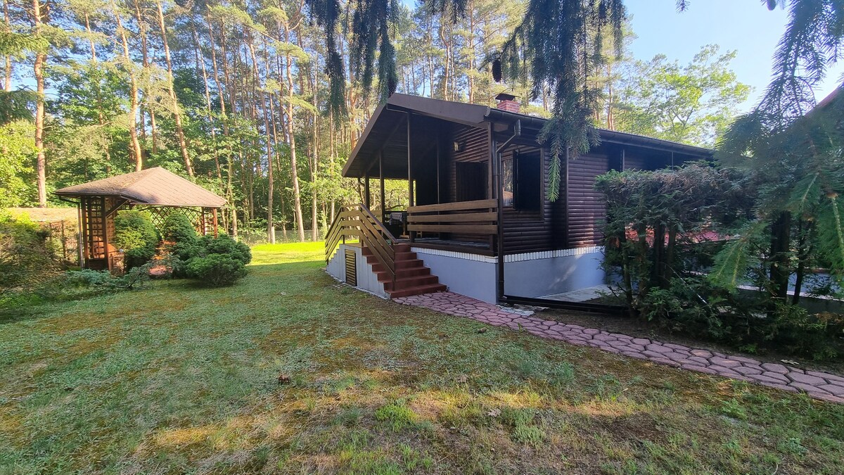 Meşəyə yaxın sakit bir ərazidə buxarı olan müasir il boyu yay kotteci. Varşavaya yaxın atmosferli yaşayış yerləri təxminən 1 saatdır. 7 nəfərə qədər 2 yataq otağı, təchiz olunmuş mətbəx, buxarı. Atmosfer işıqlandırma. Verandada mebel və manqal, bağça, oyun meydançası, maneə kursu, yelləncək, tramplin. Dekorativ quşlar və krallar olan ferma evi. Şəhərdən kənarda romantik həftəsonu və ya uşaqlarla kirayə vermək üçün mükəmməldir, kiçik şənlik. Taxta ev, ilboyu. Təbiətə yaxın yerdə istirahətlə dolu şəhərdən kənarda istirahət etmək
