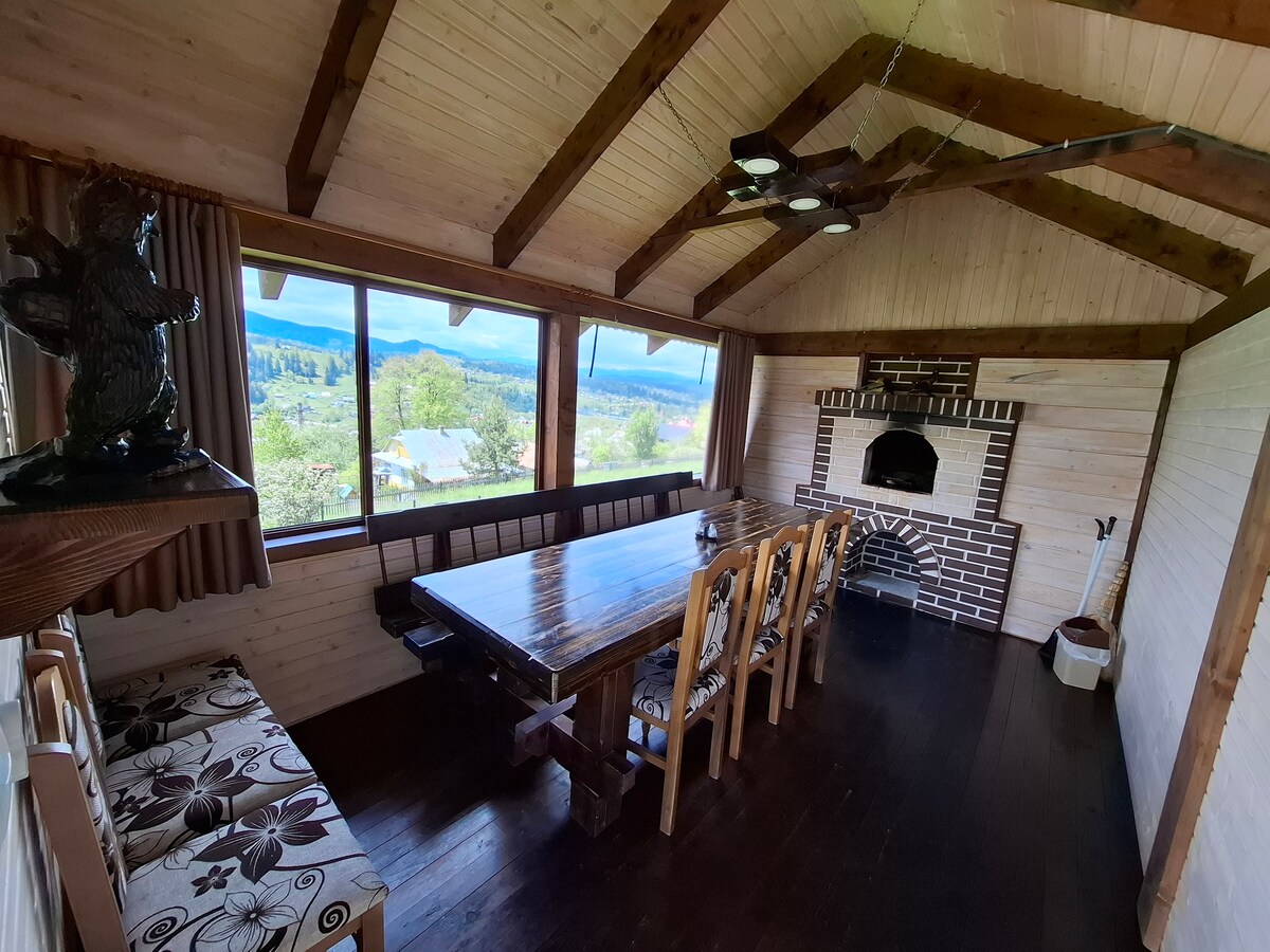 Mənzərəli ərazidə yerləşən taxta terraslı rahat mənzillər. Ətrafda ağaclar, qazon və istirahət zonası olan geniş yaşıl ərazi var. Dağ mənzərəsi atmosferə sükunət və təbiətlə ahəngdar atmosfer bəxş edir. Bura Karpat bölgəsinin gözəlliyi ilə birləşən rahatlıq axtaranlar üçün ideal yerdir. Ailəvi istirahət, görüşlər və ya açıq havada romantik axşamlar üçün uygundur. Terras və yemək üçün təchiz olunmuş zona təbiətdə rahat vaxt keçirmək üçün bütün şəraiti yaradır.