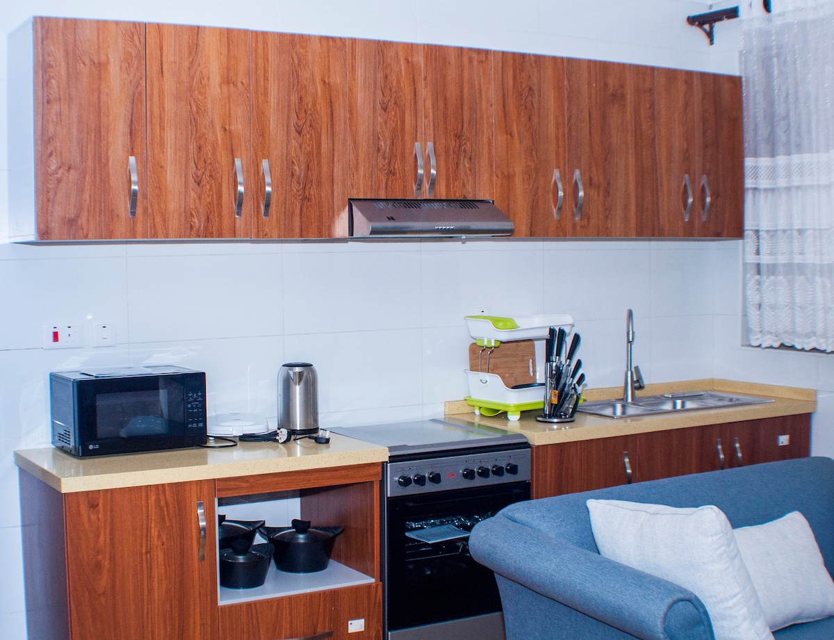 Green garden apartments is a fully furnished apartments with adequate personnel who are our house keeping girls who offer splendid services to our clients. It has 24/7 CCTV'S Cameras all round and its location it's near many accessible social amenities e.g hospitals shopping malls, supermarket,,police station,,Forex Bureau,dry cleaning shops,, grocery shops and drug marts.