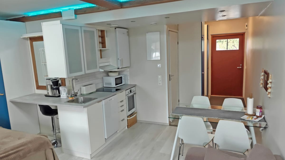 Magistral 5-ə yaxın geniş və rahat mənzildə dincəlin. Pulsuz parkinq. Yüksək keyfiyyətli Dux çarpayılar, sürətli WIFI və Airplay və Google Cast ilə 65" LG Smart TV. Pikkirilli qril və Teboilə (Sibylla) 300 m, HalpaHalli və ABC-yə 400 m məsafədə EV şarjı ilə. Siilinjärvi mərkəzinə və Fontanella Spa-ya 2 km. Qapının yanındakı hovuz və yelləncəkləri olan arxa həyət və uşaqlar üçün sürüşkən. Kuopio şəhərinə cəld gedin. Xoş gəlmisiniz!