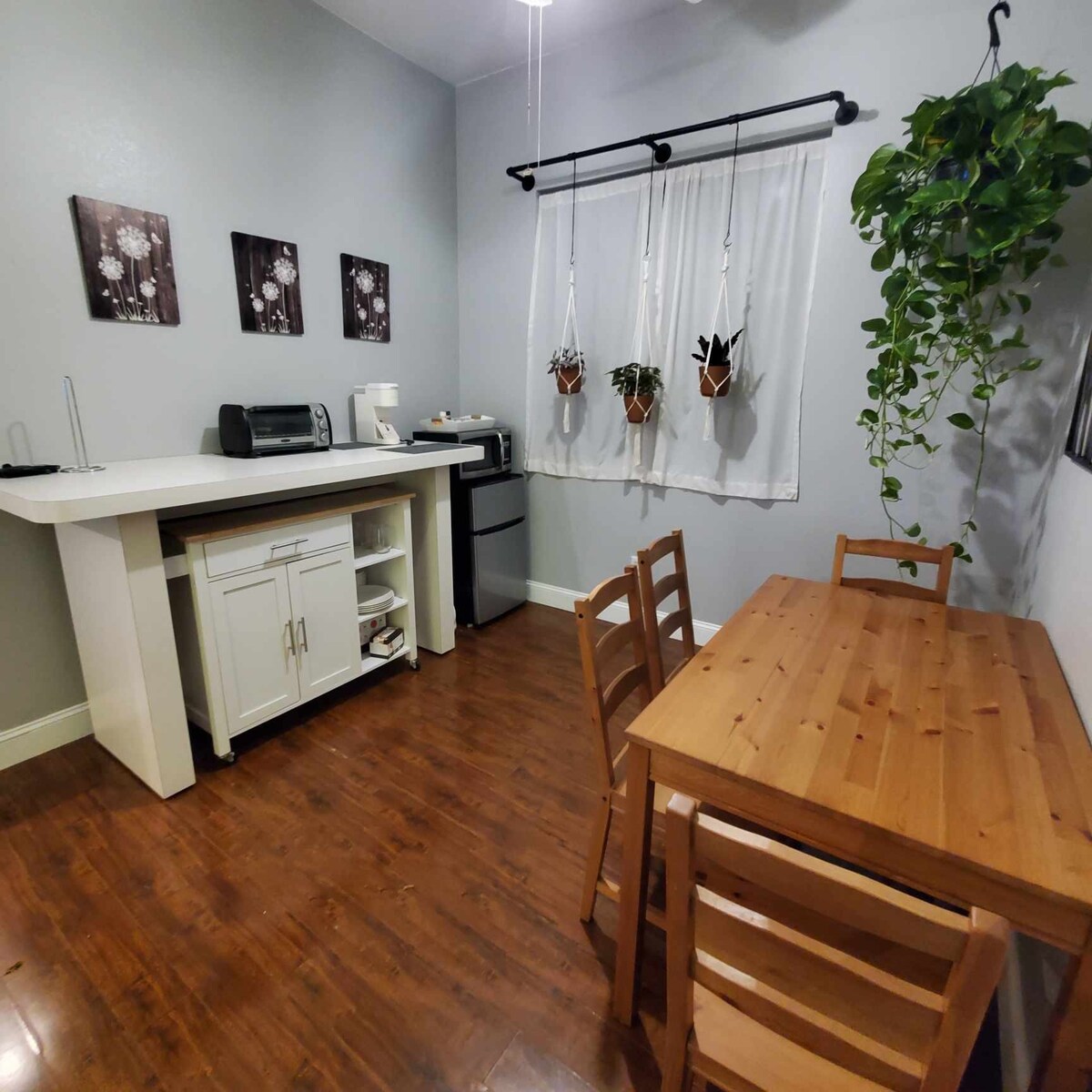 Bu rahat süita hər şeyin yaxınlığında sakit bir məhəllədə yerləşir. Sizi köməkçi elementlərlə dolu veranda qarşılayacaq. Özünüz üçün ayrıca süitaya ön qapı girişi. PAYLAŞILAN MƏKAN YOXDUR🎉. Əsl bitkilər sakit bir məkana həyat və təmiz hava gətirir. Qonaq otağınız, iş sahəniz, balaca mətbəxiniz, yemək məkanınız, hamam otağınız və yataq otağınız olacaq. Yaxınlıqdakı parklar üçün sorğu əsasında piklebol dəsti və digər idman/fitnes avadanlıqları. Yaxınlıqdakı cığırlar, çaylar və göl üçün icarəyə verilən velosipedlər və avarçəkənlər.