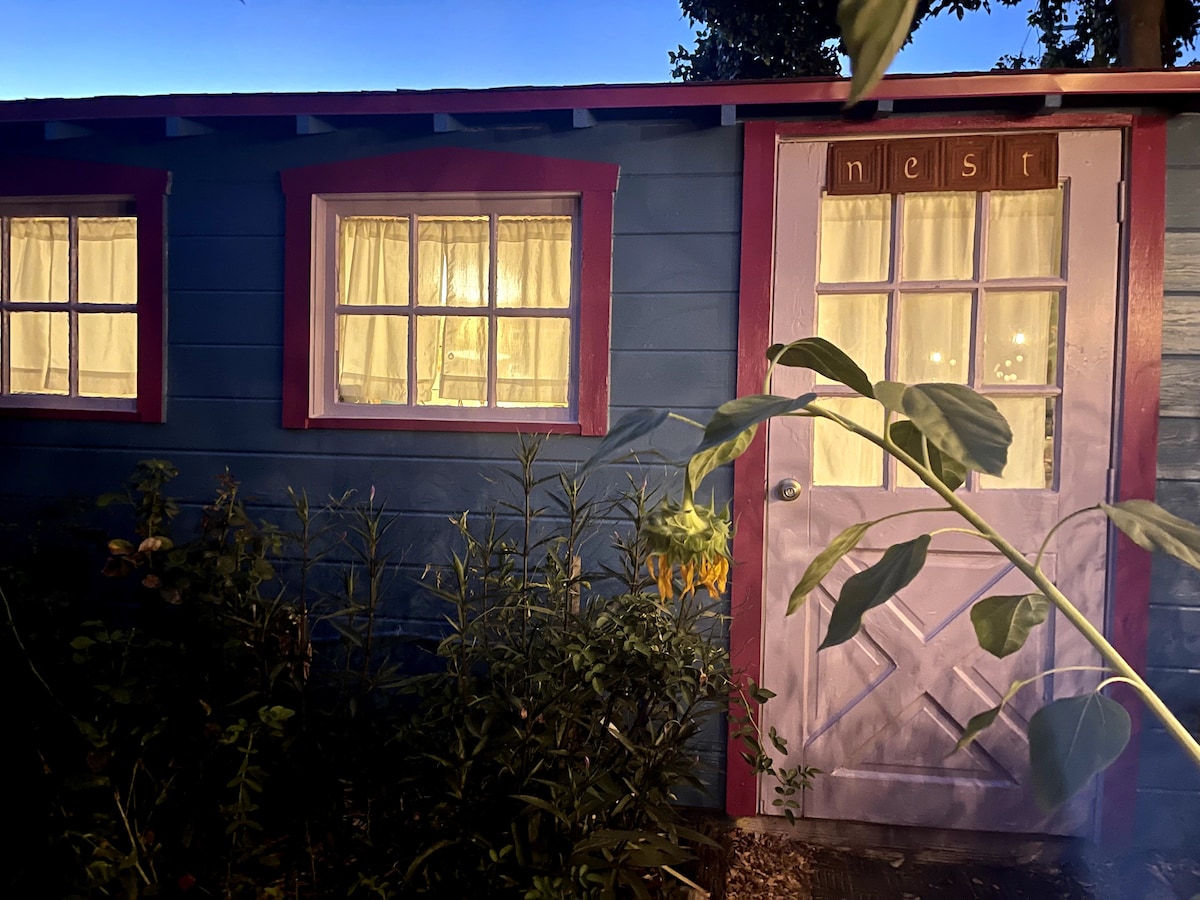 Dinc və mərkəzdə yerləşən bu məkan bir əsr yaşı olan palıd ağacı və füsunkar Vudlend şəhərinin mərkəzində qırmızı ağac arasında yerləşir. Sakramento Beynəlxalq Hava Limanından cəmi 14 dəqiqə, Vudlendin Əsas küçə qəhvə dükanlarından, restoranlarından və alış-veriş mərkəzlərindən 4 blok. Məkan ayrıca evdir və qonaqların bütün əmlaka yeganə girişi var. Ev sahibi qapının yanında yaşayır və dəstək üçün əlçatandır. Yuvanın qarajın üstündə yerləşdiyini və yalnız dik pilləkənlərlə əlçatan olduğunu unutmayın.