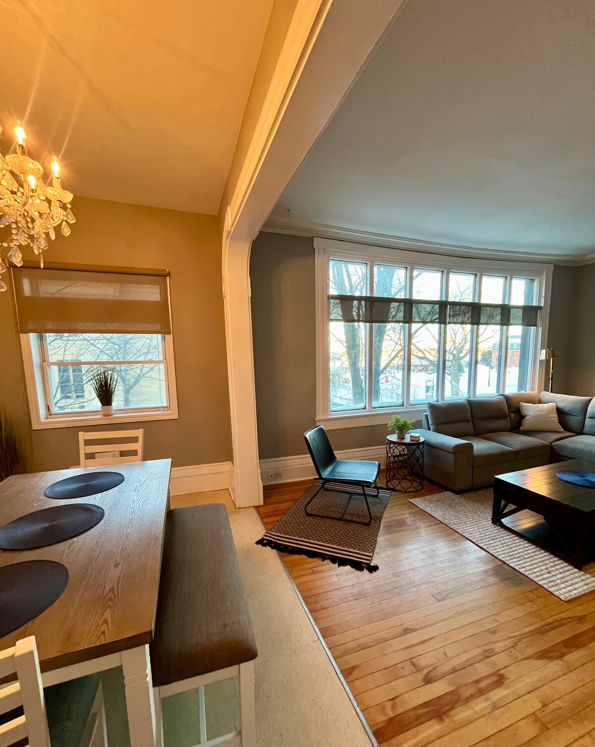 Note* this unit is on the third floor and there are 32 steps to the top. Newly renovated 2 bedroom apartment (one king bed and one full size bed) + bonus room (it’s up to you to find it;) in a 130 year old historic mansion, the large 1000 square feet originally the attic space of the large Victorian mansion. Located in a central Northside location close to walking trails, walking bridge, downtown, several restaurants and breweries. Security cameras are on all exterior doors of our property