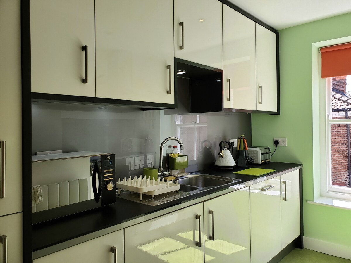 Yeni tikilmiş, dəbli York mənzili, pulsuz parkinq və elektrikli nəqliyyat vasitəsi