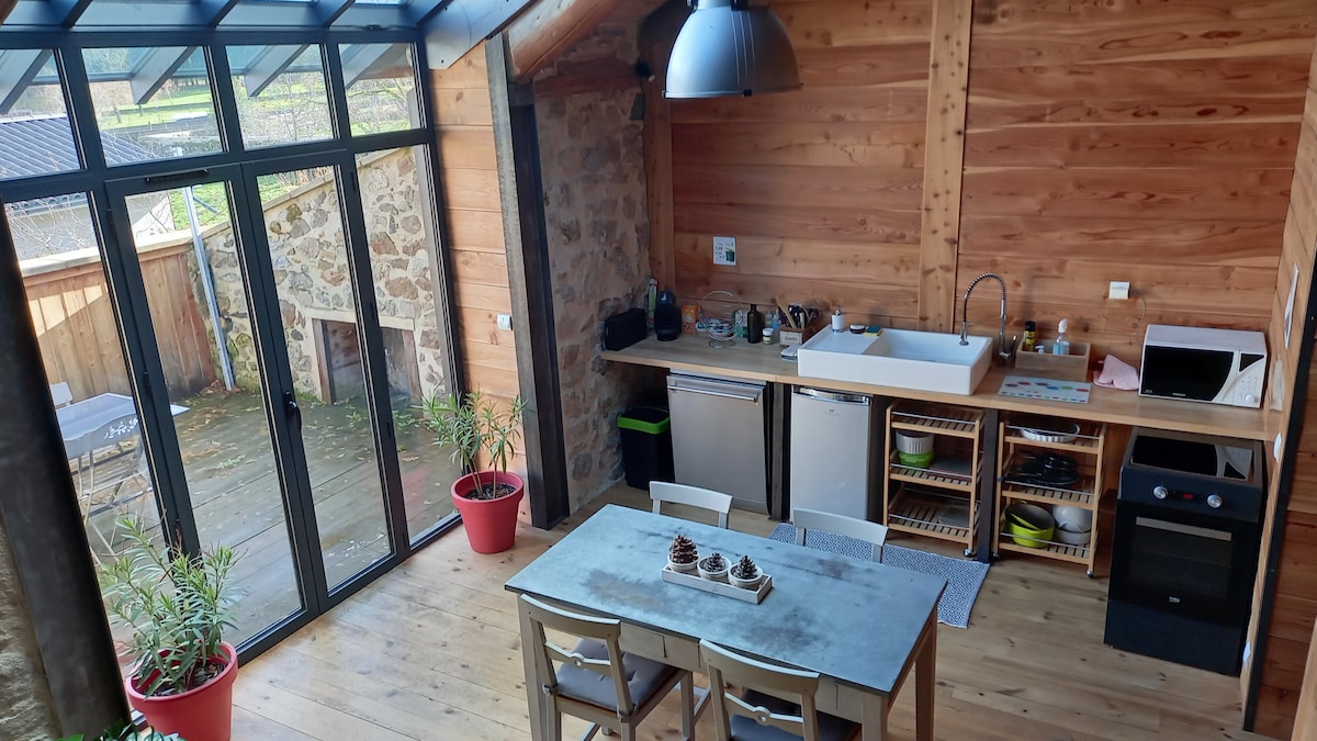 Offrez-vous une escapade romantique dans une ferme du 18ᵉ siècle rénovée. Studio chaleureux avec vue panoramique sur les montagnes, jacuzzi & sauna privatifs, sans vis-à-vis. 🌹 Champagne, fleurs & pétales disponibles pour sublimer vos soirées. Espace extérieur cosy avec barbecue, à 5 min des restaurants & rivière. 📍35 min St-Étienne, 10 min Yssingeaux, 30 min Le Puy, 10 min passerelles himalayennes.