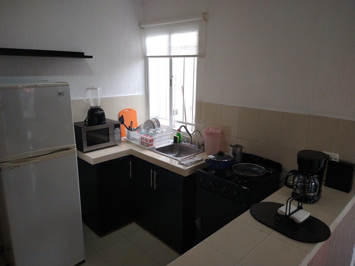 2 yataq otağı olan gözəl mənzil! New.Very rahat. Xoş qonaqlama üçün lazım olan hər şeylə təchiz olunub. Sadəcə paltarlarınızı gətirməlisiniz. Əla vəziyyətdədir. Çimərlik 40 metr məsafədədir. Şəhər mərkəzindən 4 blok Chicxulub! Nəqliyyat vasitəsinə ehtiyacınız yoxdur. Mərkəzdə market, aptek, camaşırxana, bankomat tapa bilərsiniz. Restoranlar, dondurma salonları, diqqəti yayındırır. Ərzaq mağazaları.