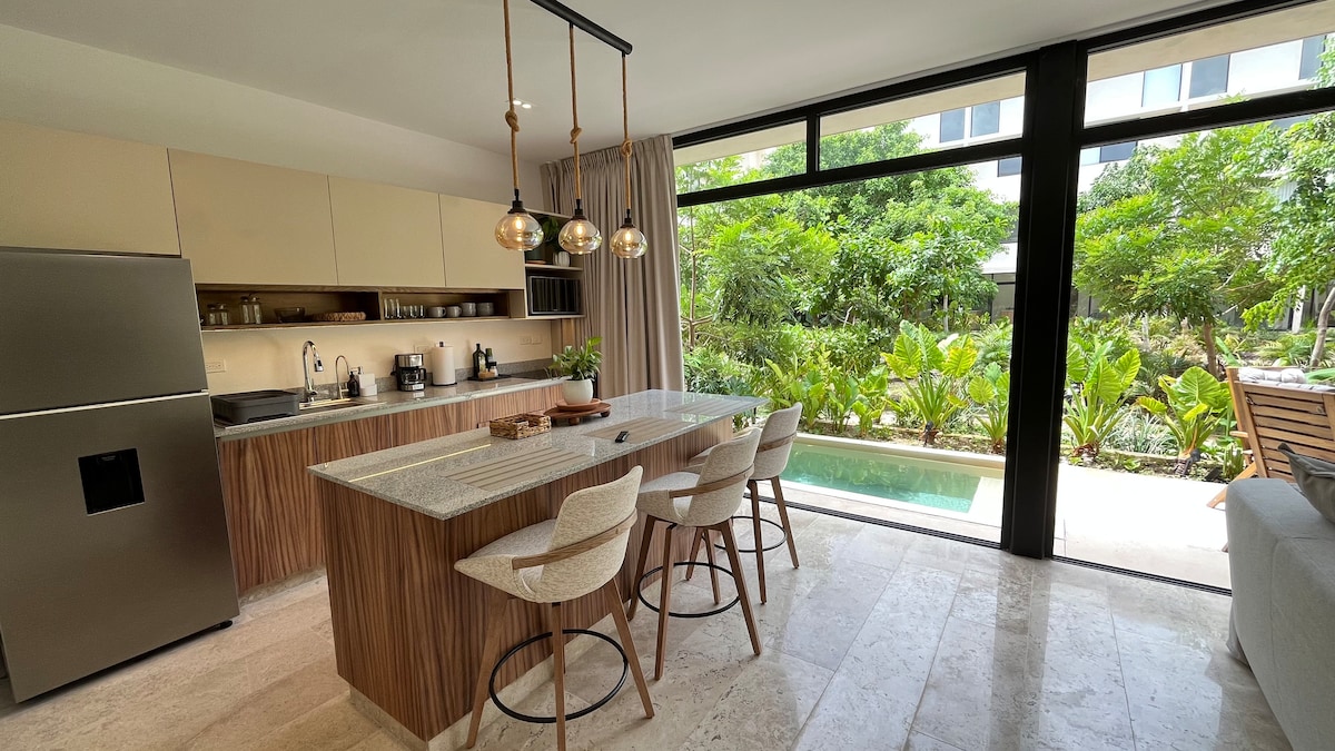 Sakitliyi və təbii mühitini hələ də saxlayan, Mérida-da ən sürətlə inkişaf edən ərazilərdən biri olan Temozon Norte şəhərindəki sığınacağınıza xoş gəlmisiniz. Bir otaqlı mənzilimiz dincəlmək və zövq almaq üçün idealdır: əlavə qonaqlar üçün qonaq otağında böyük ölçülü çarpayı, dolab, ayrıca hamam otağı və rahat ikinəfərlik divan-çarpayı var. Terrasda şəxsi hovuzunuzdan zövq alın və ya binanın idman zalı, ümumi hovuz, ev heyvanı parkı və tədbir otağı kimi imkanlarından yararlanın.