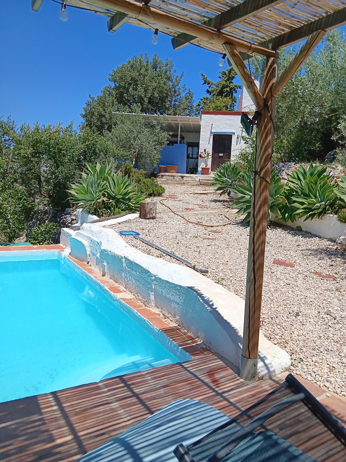Bradomín, nestled on a picturesque hillside overlooking the charming town of Cártama. Just a 20-minute drive from the centre of Málaga and the airport, it is an idyllic retreat for families with children or groups of up to 10 people, offering a peaceful, private and safe setting surrounded by nature. Its west-facing position offers stunning views and unforgettable sunsets. With a private pool, fruit trees, Wi-Fi and all modern amenities. We look forward to welcoming you. Patricia and David