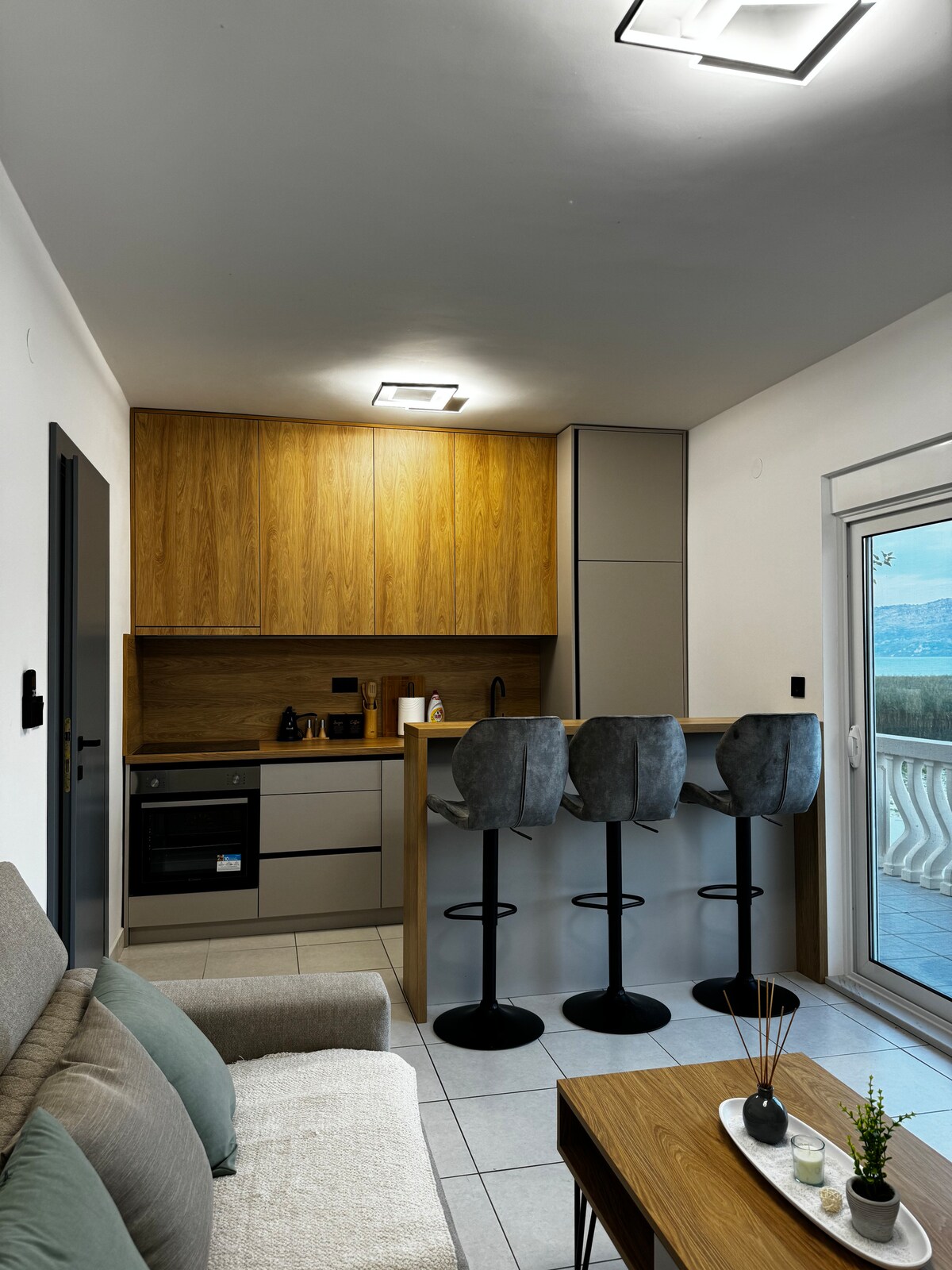 Ev Karuc kəndində yerləşir, Skadar gölünə gözəl mənzərəsi və tam məxfiliyi var. Kiçik terras və gölə açılan gözəl mənzərəsi ilə ümumi həzz və istirahətə zəmanət verə bilərik. Ev göldən bir neçə addım məsafədədir. Burada qonaqlarımız kanoe və ya kayakinqlə məşğul ola, üzgüçülüklə məşğul ola, balıq tuta və s. edə bilər.