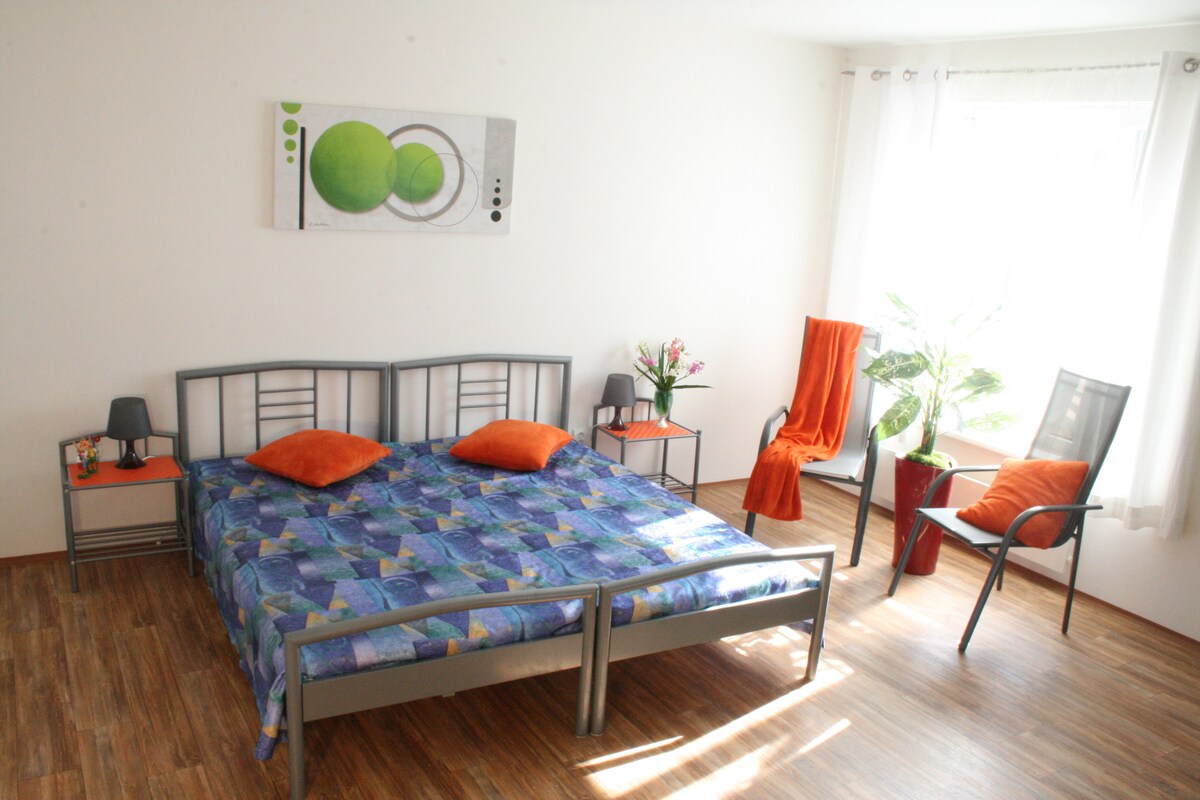 Marienbadın sakit ərazisində xüsusi girişi olan studiya mənzili. Rudolf mineral su bulaq pavilyonuna 300 m (kurort parkında) dəmir yolu stansiyasına və 700 m avtobus terminalına və avtobus terminalına, supermarketlərə (Kaufland, Lidl,Penny,Tesco) 800m