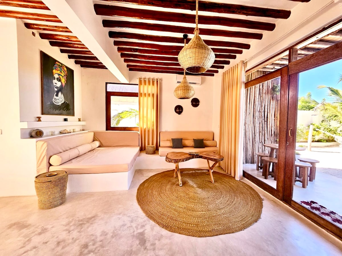 Hind okeanından cəmi bir neçə addım uzaqda! UHURU üst mərtəbə mənzil, qonaq otağında super kral ölçülü çarpayı və divan çarpayısı. Tam təchiz olunmuş mətbəx, yemək/qonaq otağı. Gördüyünüz ən gözəl firuzəyi suyu olan Jambiani Mfumbvidə yerləşir. Netflix-ə çıxışı olan televizor, AC otaqlar, Sürətli Wi-Fi, gündəlik təmizlik işləri, xüsusi parkinq, terras və təhlükəsizlik, seyf qutusu, Ütü və lövhələr, saç feni. Bütün Zanzibarda belə bir yer yoxdur! Günəş batması/günəşin qalxması mənzərəsi olan ayrıca dam üst terras