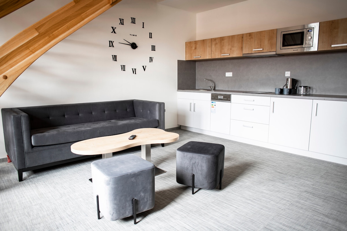 Bu loft meşənin düz kənarında, sakit Vraný kəndində yerləşir. O, yalnız sizin üçün ayrıca girişi və 120m2-lik bütöv sahəsi olan tam məxfilik təklif edir. Mənzil tam təchiz olunub, geniş və yolda yatmaq və şəhərdən həftəsonu tətili üçün mükəmməldir. Rahat taxta interyer, sakit mühit və təbiət mənzərələri qonaqların özlərini rahat və evlərindəki kimi hiss etmələrini təmin edir. Səhər saatlarında velosiped turuna və ya göbələklərə gedə, günorta qəhvə ilə dincələ və axşam heç bir narahatlıq olmadan rahatlıqdan zövq ala bilərsiniz.