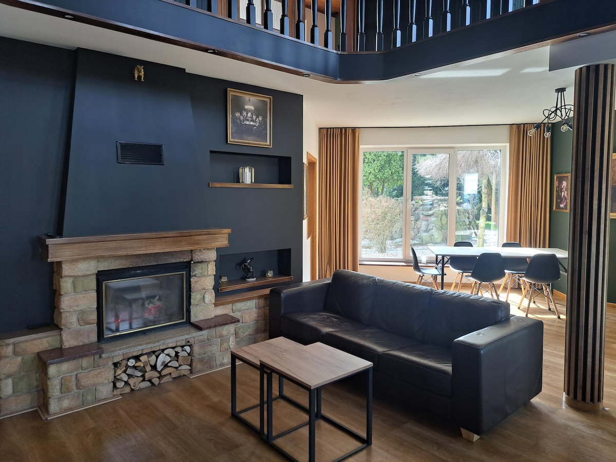 Villa Şənliyi şəhərdən kənarda daha böyük qrup və ya ailə birləşməsində istirahət etmək üçün əla yerdir. Ev sakit ərazidə yerləşir və çox böyük bağı və üzmək üçün yığılmış hovuzu da var. Ətrafda gündəlik gəzintilər və ya velosiped turları üçün çoxlu meşə sahələri var. Bir neçə yerli çaydan birində kayakinq də təşkil etmək mümkündür. Villa avtomobillə təxminən 40 dəqiqə məsafədə yerləşir. Ən yaxın şəhər Zduńska Wola-dır.