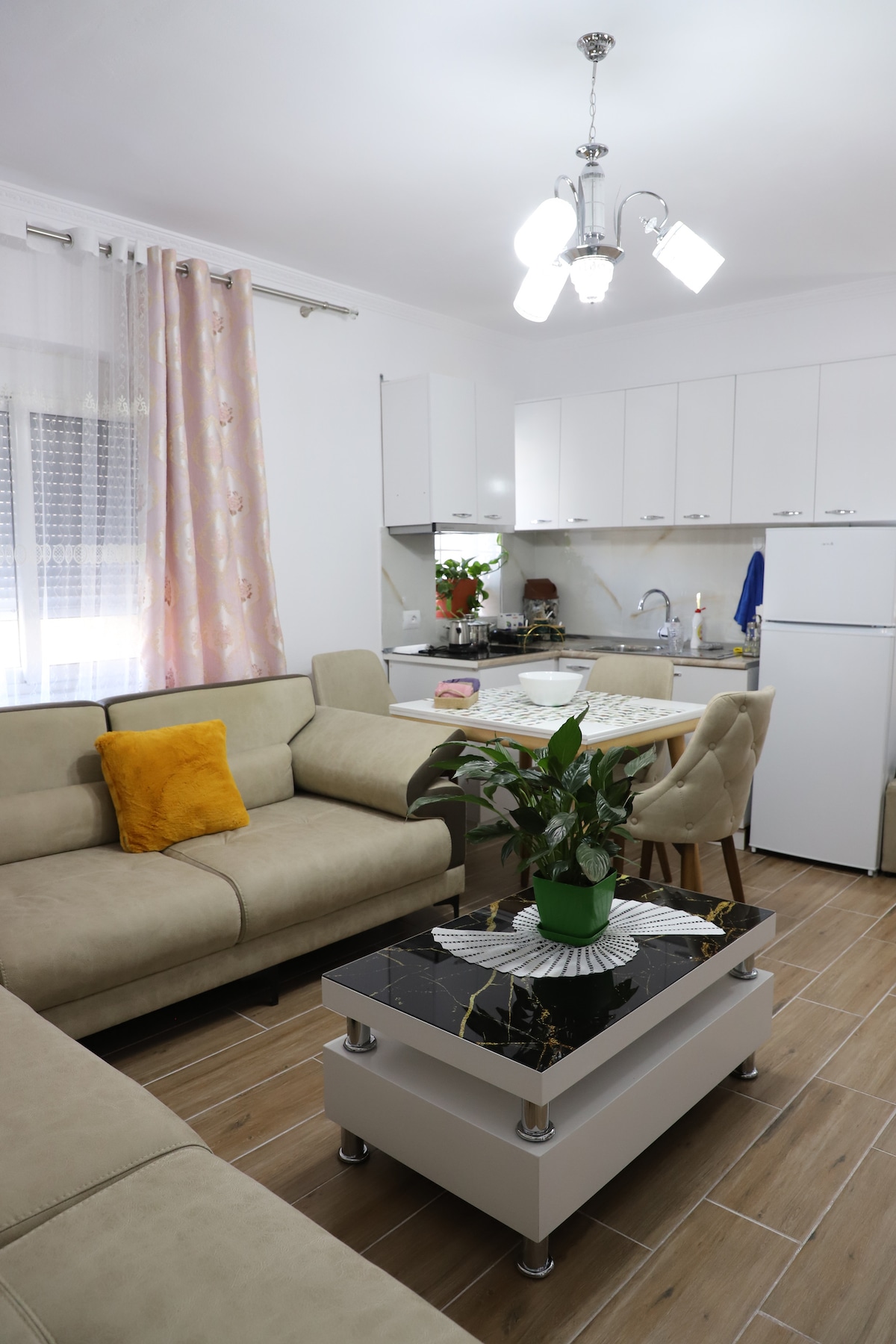 Qala təpəsinin ətəyində, Beratda yerləşən mənzilimizdə təcrübə və xatirələr yaradın. Mənzilimiz 2400 illik Berat şəhərinin görməli yerlərindən zövq almaq istəyən hər kəs üçün uyğun rahat bir məkandır. 57 metr kvadrat yataq otağından qonaq otağı, mətbəx, hamam otağı və bağçaya qədər ehtiyacınız olan hər şeyi təklif edir. Mənzildə bütün lazımi ləvazimatlar, pulsuz Wi-Fi, mətbəx, kondisioner, ağıllı televizor, CCTV, Pulsuz parkinq və s. Özünüzü evdəki kimi hiss etməyiniz üçün çox gözəl interyer dizaynı da var.