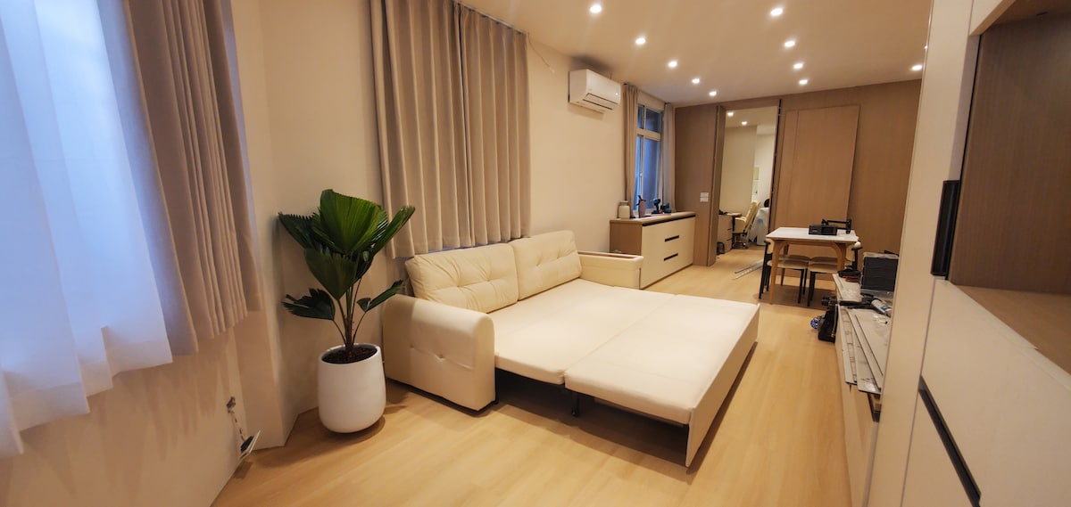【Urban Oasis】中山站-城市心臟中的寧靜綠洲! 有人可能認為在都市中心尋找寧靜不可能,但中山站周圍的綠地公園卻能讓您享受片刻平靜。這個優雅裝潢的住所讓您在繁華都市中找到一處避風港。這裡完美結合城市的活力與自然的寧靜,是理想的居住選擇。 【Culinary Delight】中山站-美食愛好者的天堂! 中山站周圍匯聚了眾多知名餐廳和街頭小吃攤,讓您盡情享受美食樂趣。無論是台灣小吃還是國際美食,這裡都能滿足您的味蕾。 【Cultural Hub】中山站-文化藝術的薈萃地! 中山站是文化藝術愛好者的天堂。步行即可抵達博物館、畫廊和表演藝術場所,讓您輕鬆探索當地的藝術和文化精髓。這個充滿現代設施和新穎裝潢的住所,為您打造了極富放鬆氛圍的空間,是您深入體驗台北城市文化的理想基地。 【Convenient Connection】中山站-便捷交通無縫連接! 中山站讓您能輕鬆快速地抵達台北市內各個角落。您可以透過捷運系統輕鬆前往台北101、國父紀念館、士林夜市等地標,體驗台北的精彩生活。 獨家:70吋頂級Sony大電視,德國訂做加大高級床組,折疊式工作桌,歡迎入住來體驗!。