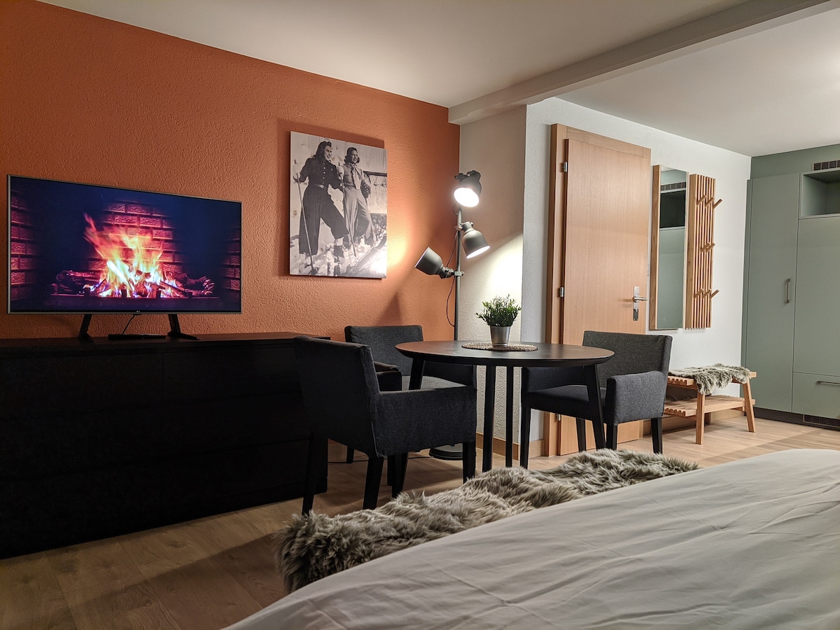 Yenilənmiş studiyamız mərkəzdə, Zermatt qatar stansiyasından 5-10 dəqiqəlik məsafədə yerləşir. Pilləkənlə evə (90 addım) qalxmaq həmişə dəyərlidir, çünki məkan bir çox parlaqlıq və kəndin qeybət mənzərəsi ilə xarakterizə olunur. Mənzil tam təchiz olunmuş mətbəxdən əlavə, vanna, rahat oturma sahəsi və 1.80 m-lik çarpayı ilə təchiz olunub. Apple TV qutusu və pulsuz Wi-Fi olan televizor, eləcə də kilidli xizək otağı mövcuddur.