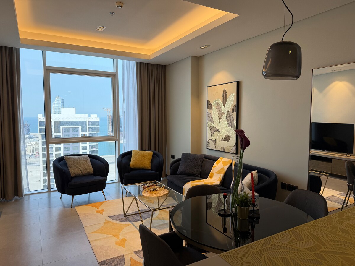 Cəlbedici Seaview və Bahraini Şəhər Mərkəzinə baxan rahat mənzil Əla mövqe Yaxınlıqdakı Alış-veriş və görməli yerlər ilə - Al Aali Mall-a 1.2 km - 1.3 km məsafədə City Center Mall - Wahooo Su Parkına 1.3 km - 1,6 km kiçik Seef - 2,4 km məsafədə Dana Mall - Bəhreyn Mall-a 2.6 km - 3.8 km Bahraini Fort - 4.9 km Bab Al Bəhreyn - Moda Mall-a 5.8 km Tam təchiz olunmuş Mətbəx İmkanları: Hovuz, Tennis, İdman zalı, Mini Mart (24/7) Ayrıca Parkinq, Camaşırxana, TV, WiFi, Ütü, Seyf Qutusu.